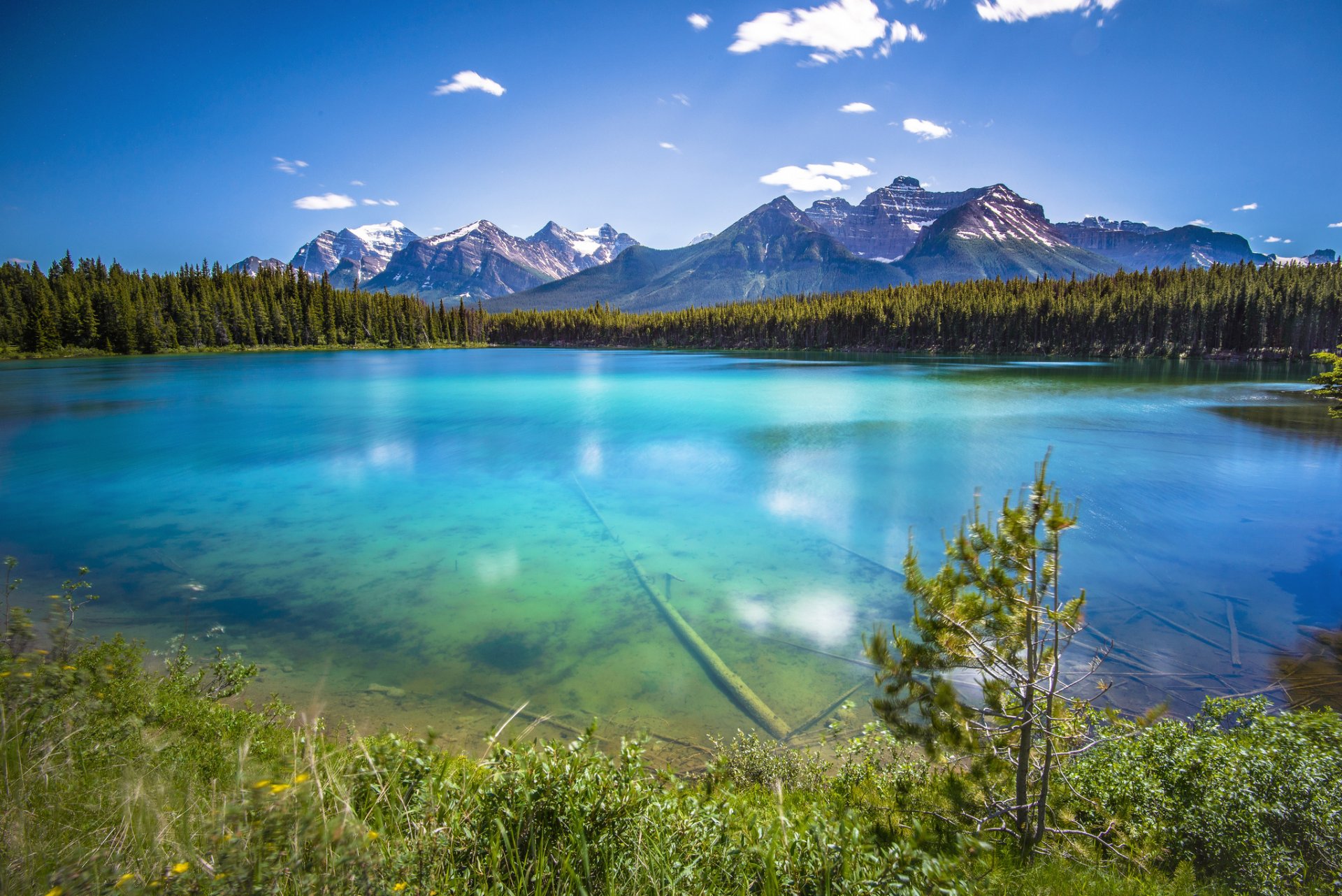 Der Abschiedssee vor dem Hintergrund von Wald und Bergen - wallpaper für das Telefon