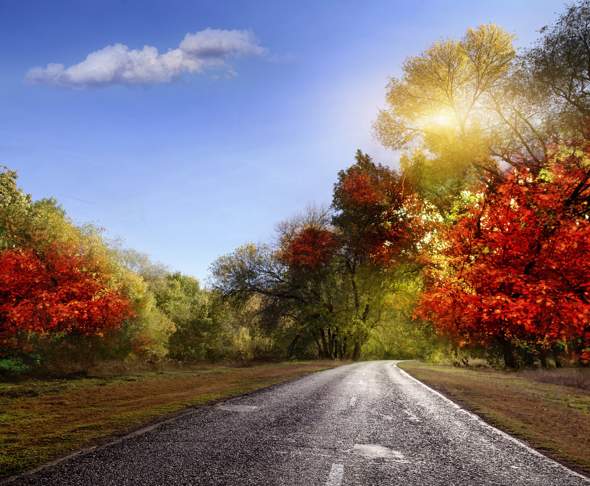 Kennungen:landschaft, natur, herbst, blätter, bunt, straße, strahlen, himmel