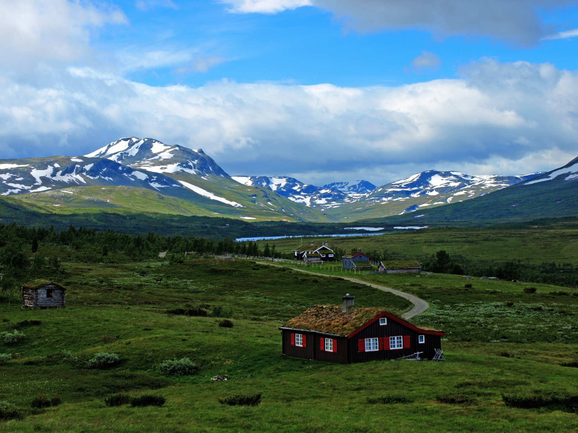 Ein Haus in den Bergen mit blauem Himmel - wallpaper für das Telefon