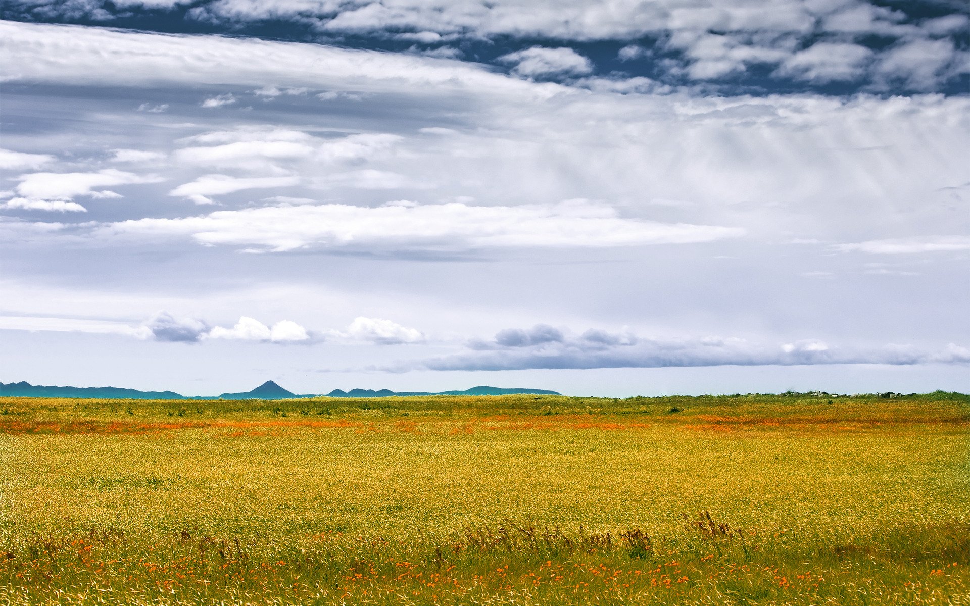 Ein wunderschönes Feld mit Blumen und unglaublichen Trümmern - wallpaper für das Telefon