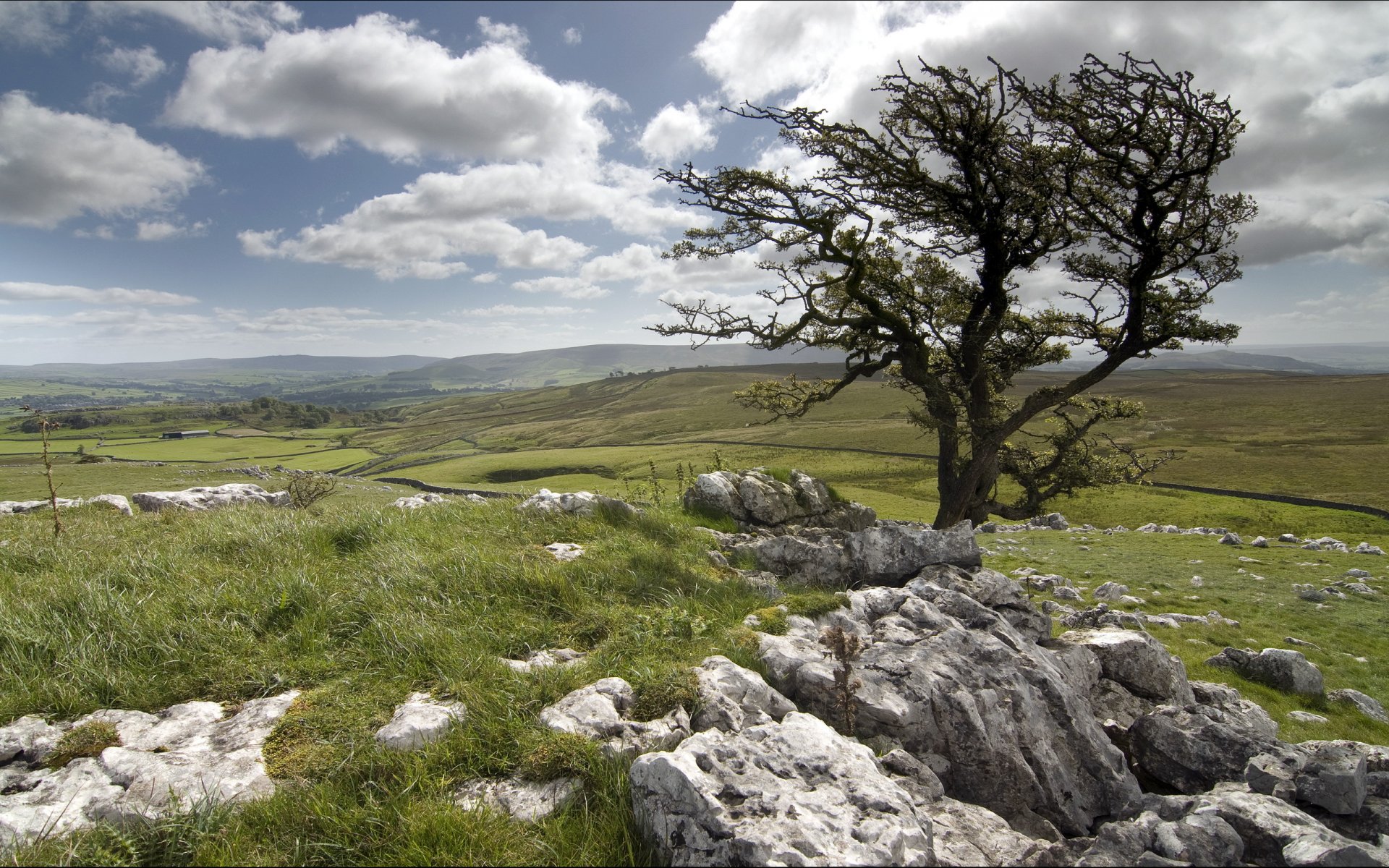 Einsam stehender Baum vor dem Hintergrund einer Steinlandschaft - wallpaper für das Telefon