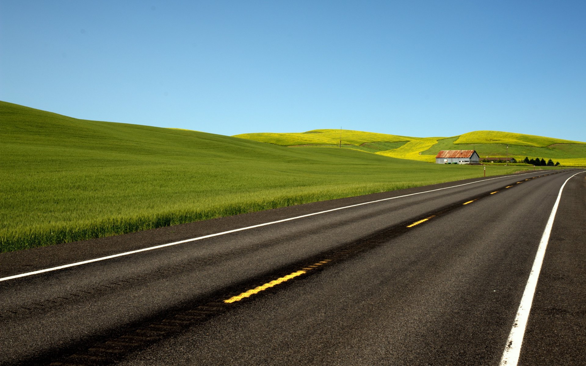 Lange Straße mit grünen Feldern - wallpaper für das Telefon