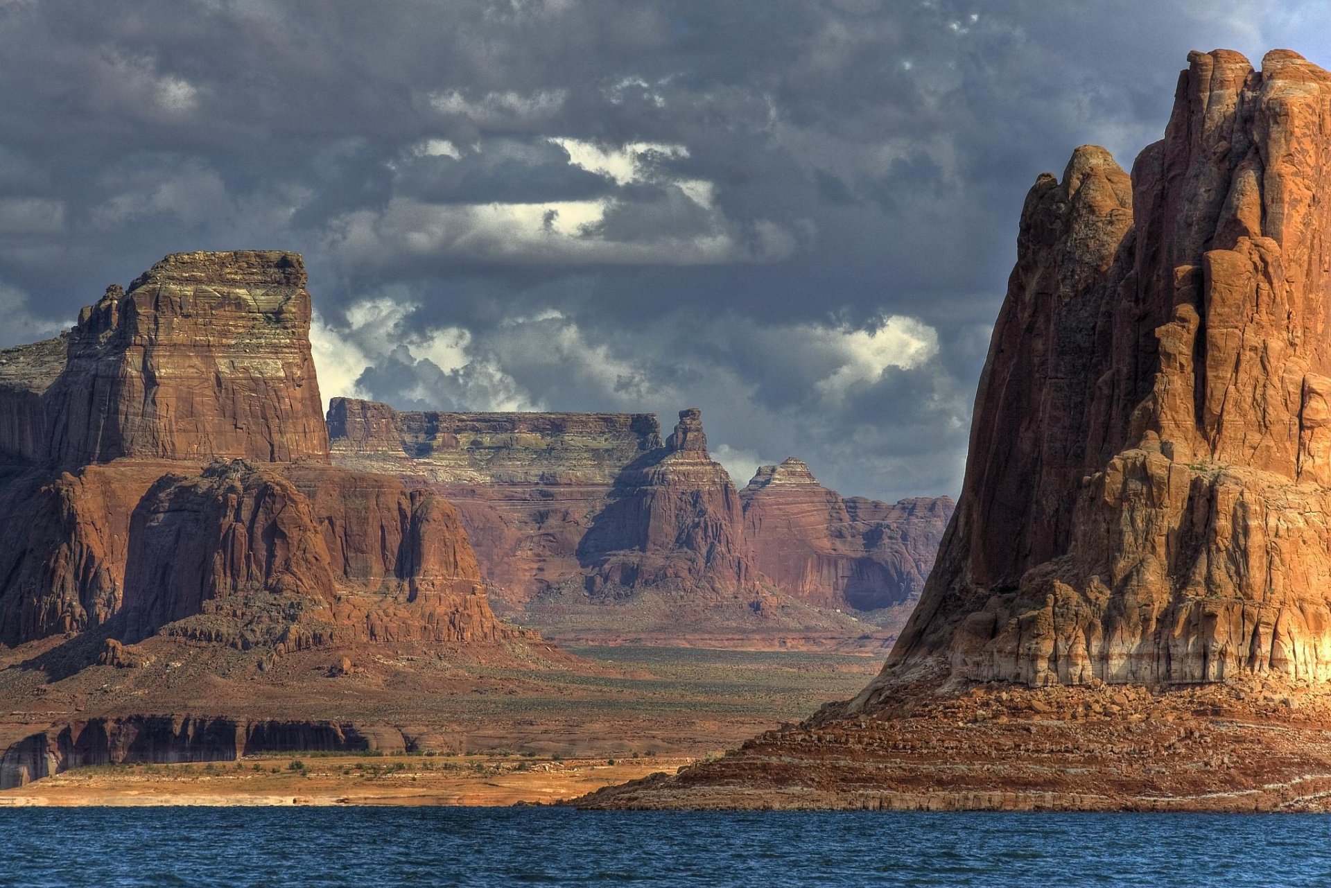 Nackte Felsen unter einem rauen bewölkten Himmel - wallpaper für das Telefon