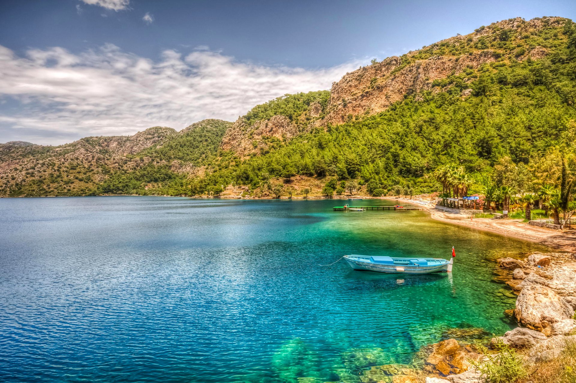 Kennungen:himmel, wolken, meer, bucht, brücke, liegeplatz, boot, berge, steine, hdr