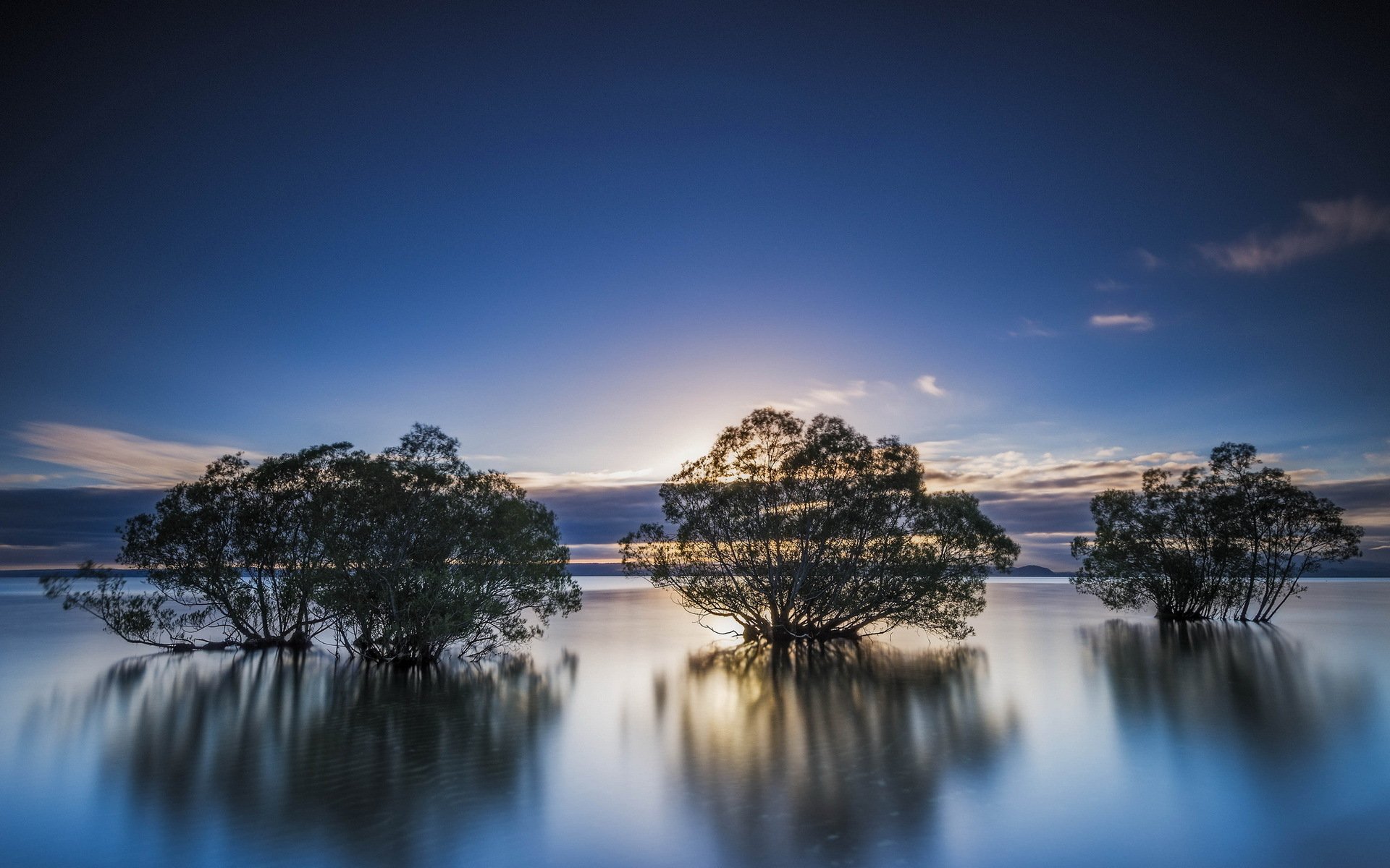 Reflexion von Bäumen im Seewasser - wallpaper für das Telefon