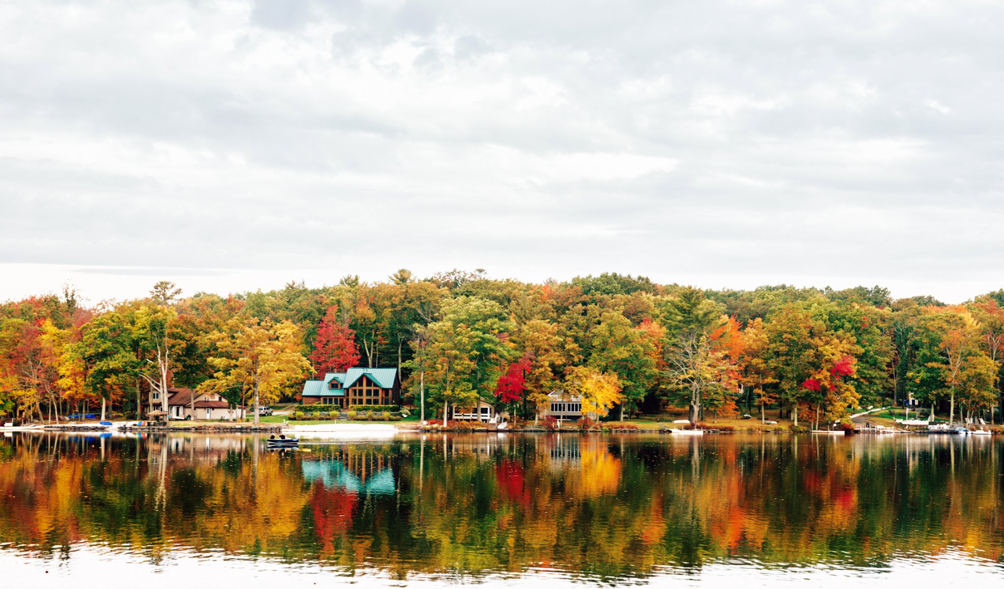 Kennungen:new york city, teedyusung, pocono berge, natur, berge, see, boote, ufer, hütten, herbst