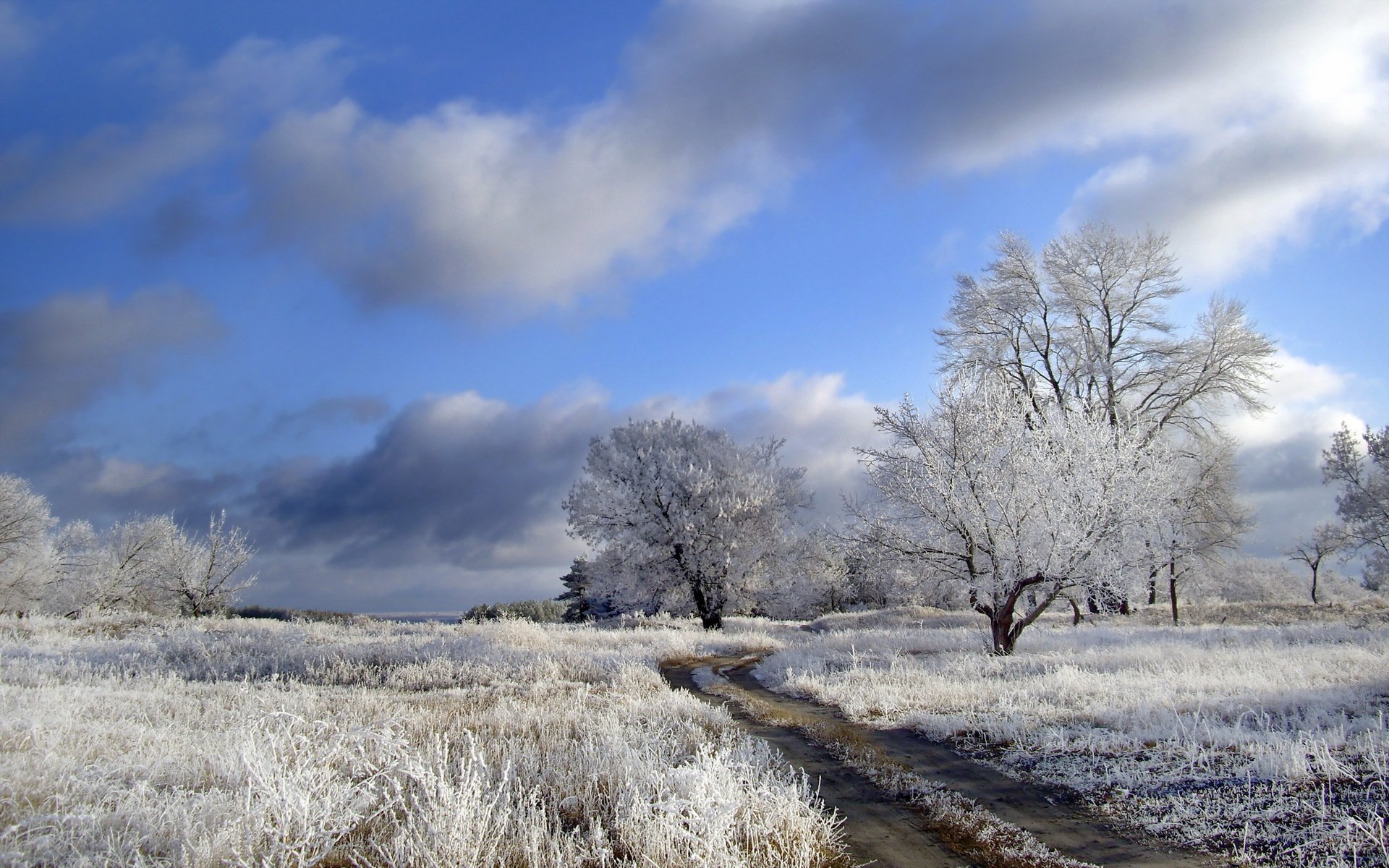 Straße in einem Feld in einer eisigen Landschaft - wallpaper für das Telefon