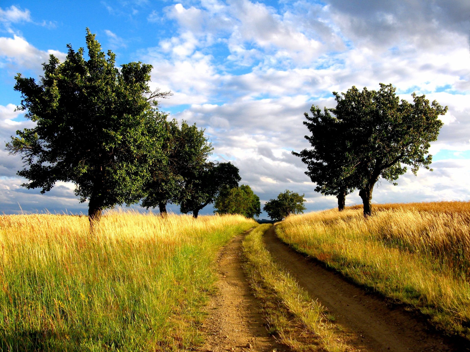 Straße in einem Feld mit Bäumen Landschaft - wallpaper für das Telefon