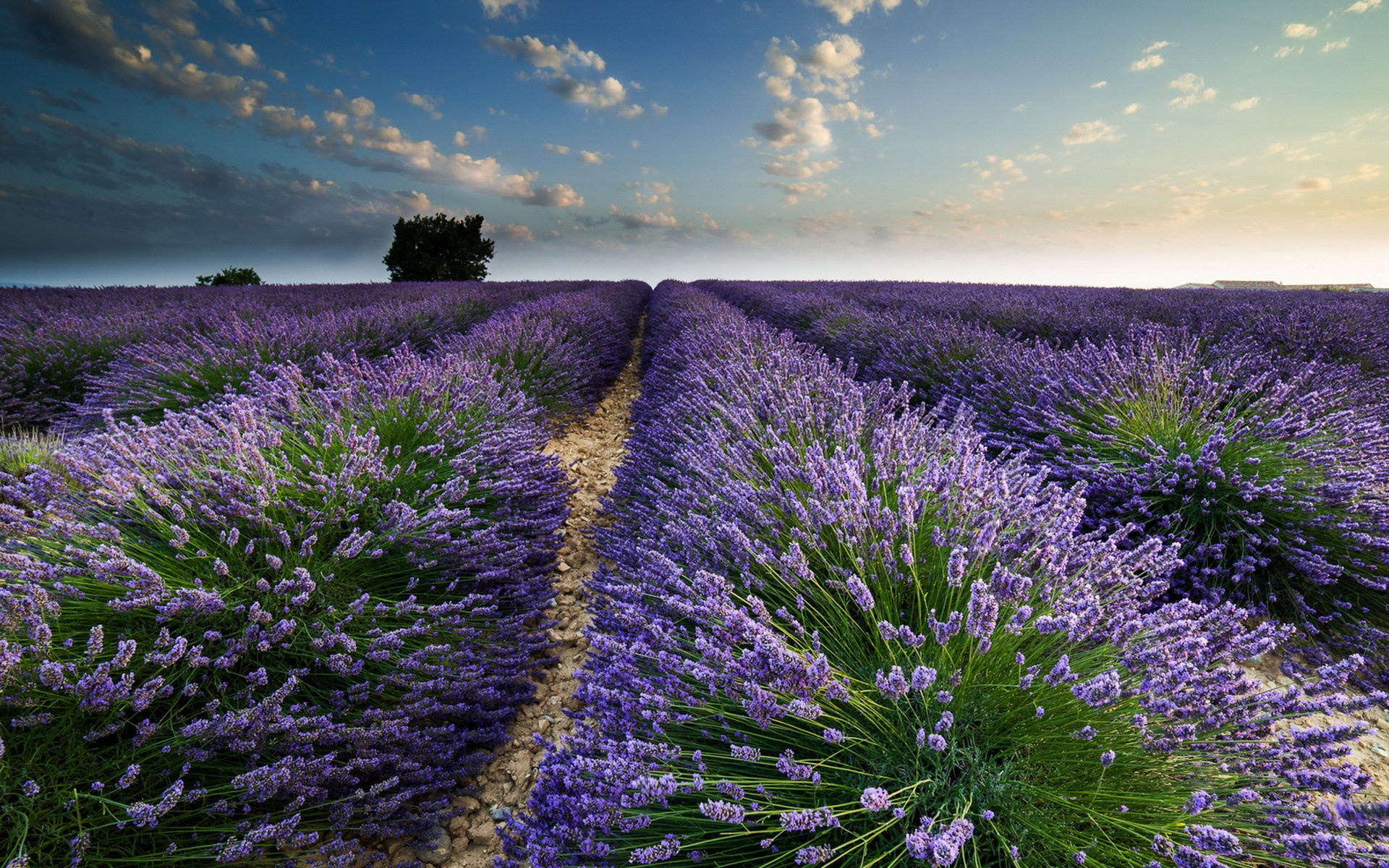 Title verführerischer Blick auf das Lavendelfeld im Sommer - wallpaper für das Telefon