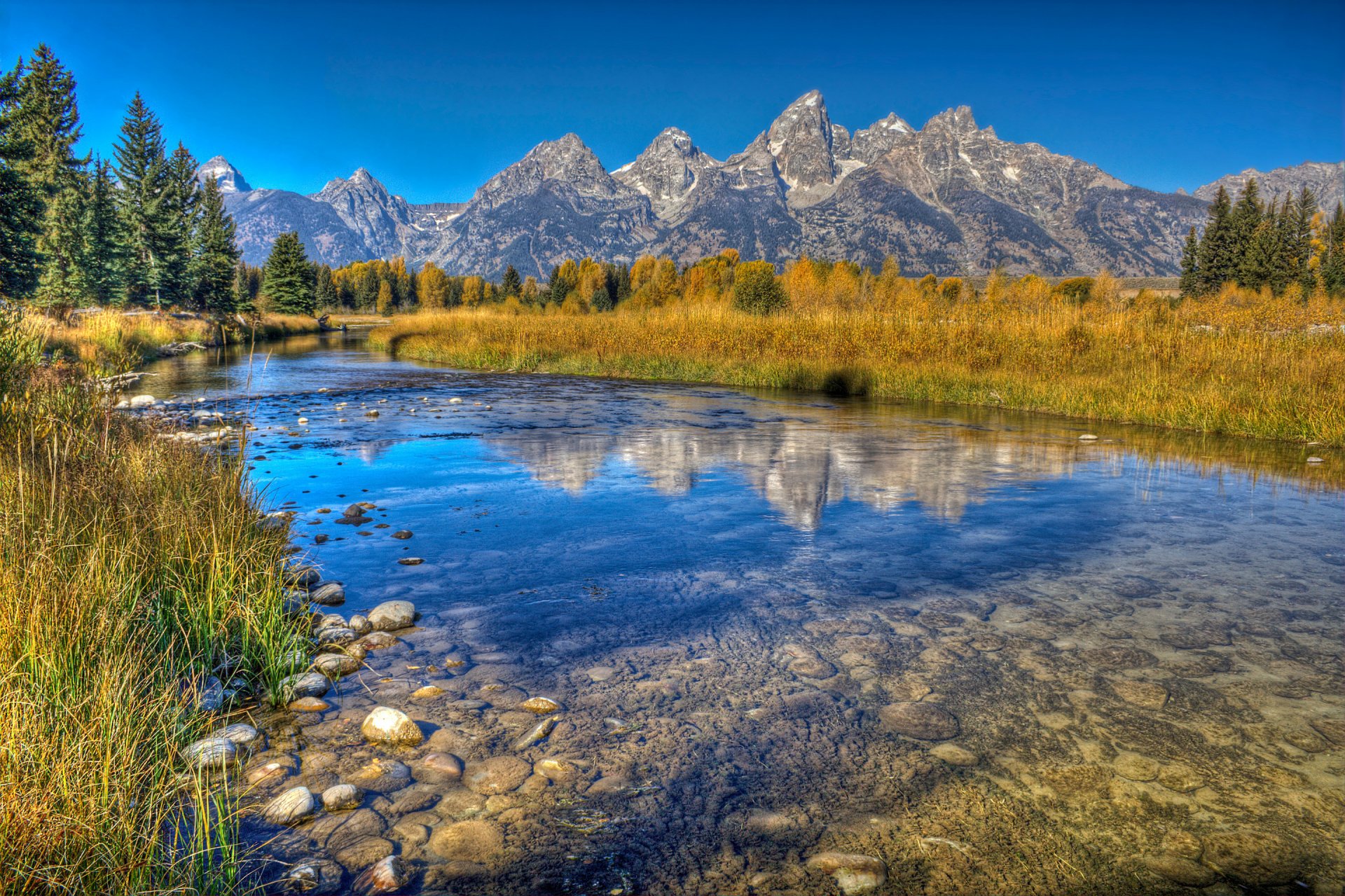 himmel berge see steine wald herbst reflexion