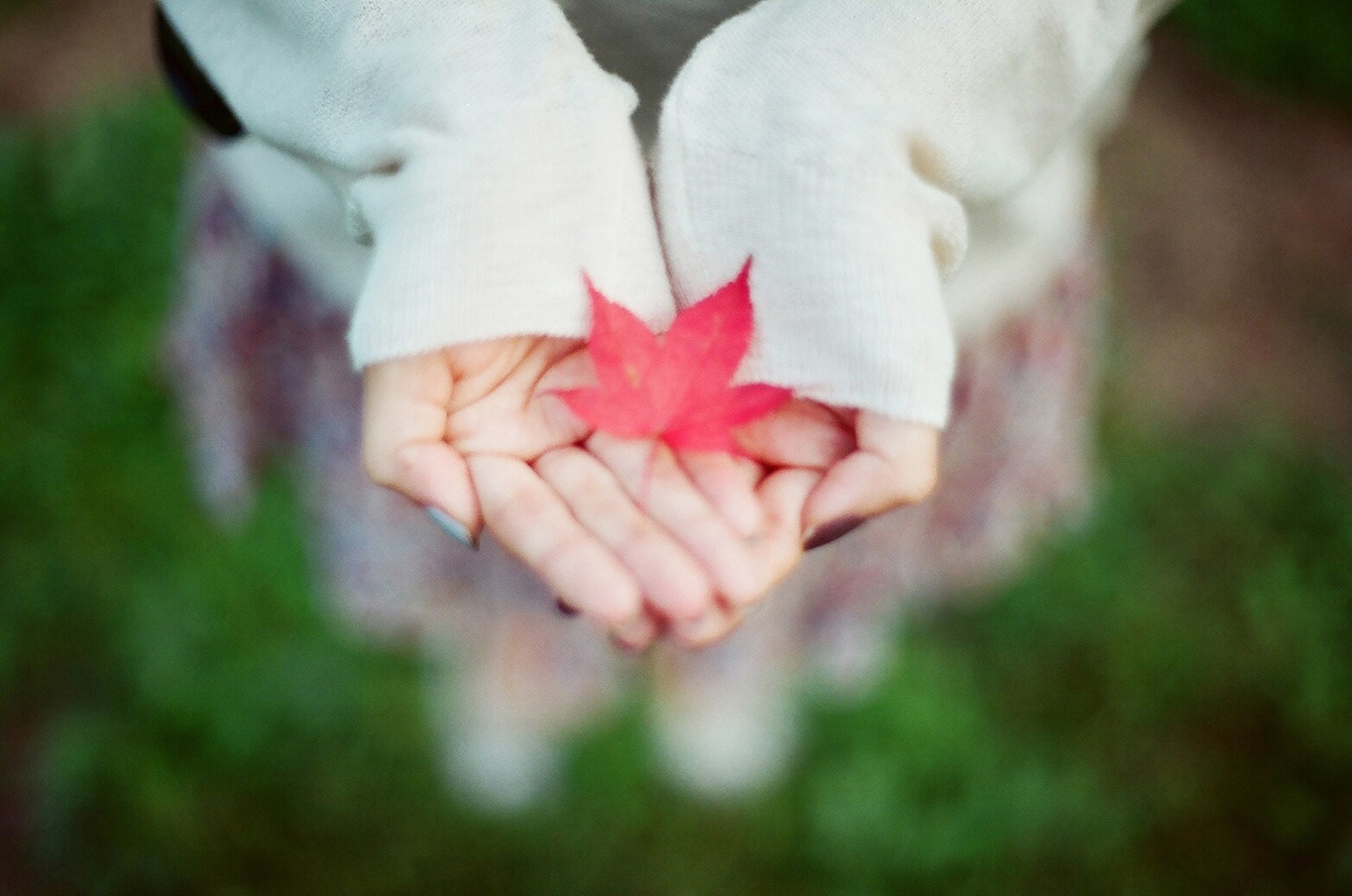 Ein Blatt auf den Handflächen. Herbst - desktop-Hintergrund