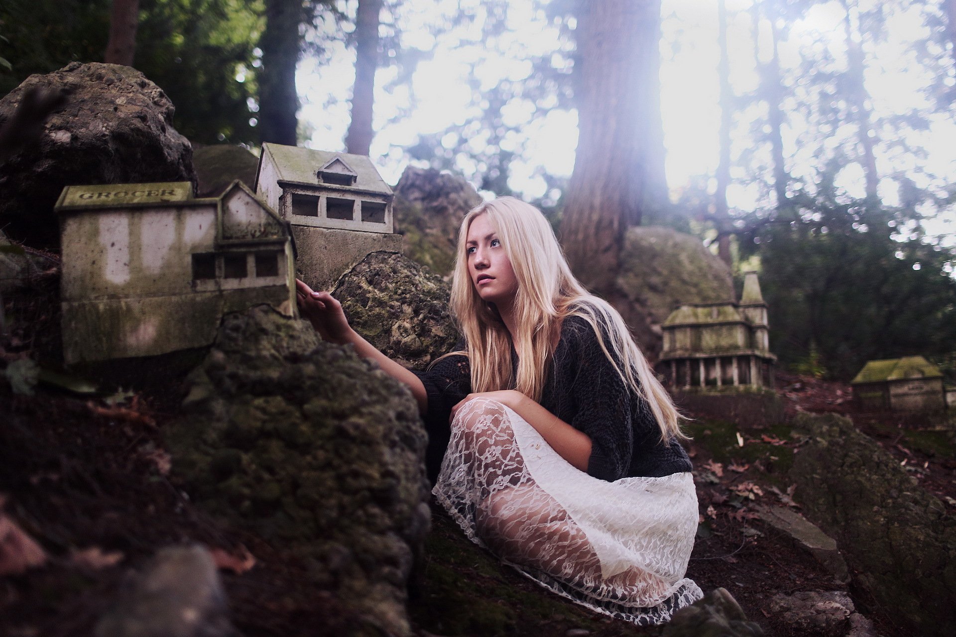 Fabelhaftes Foto eines Mädchens im Wald - desktop-Hintergrund