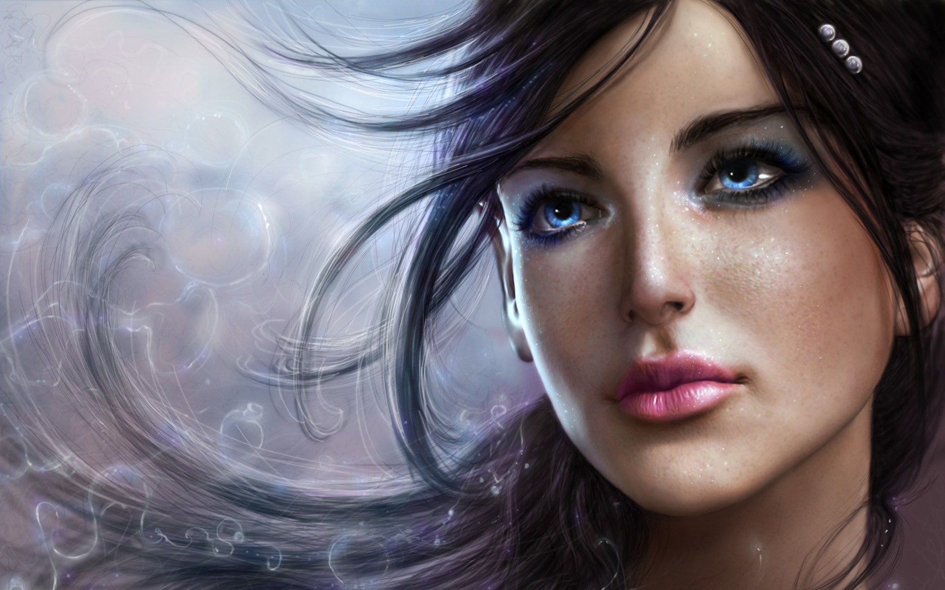 Fantastisches Mädchen mit blauen Augen - desktop-Hintergrund