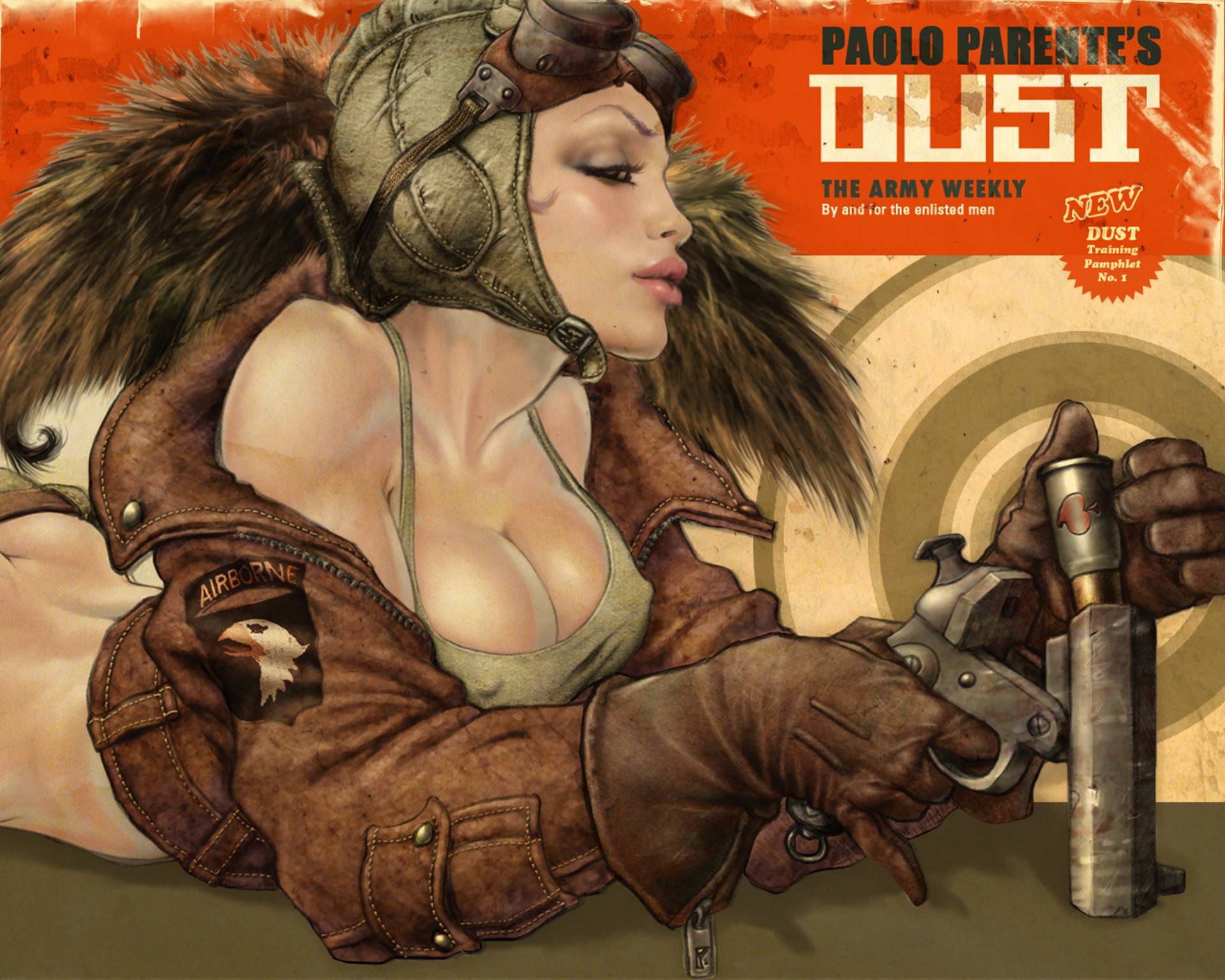 Mädchen in einer flugjacke mit einem raketenwerfer