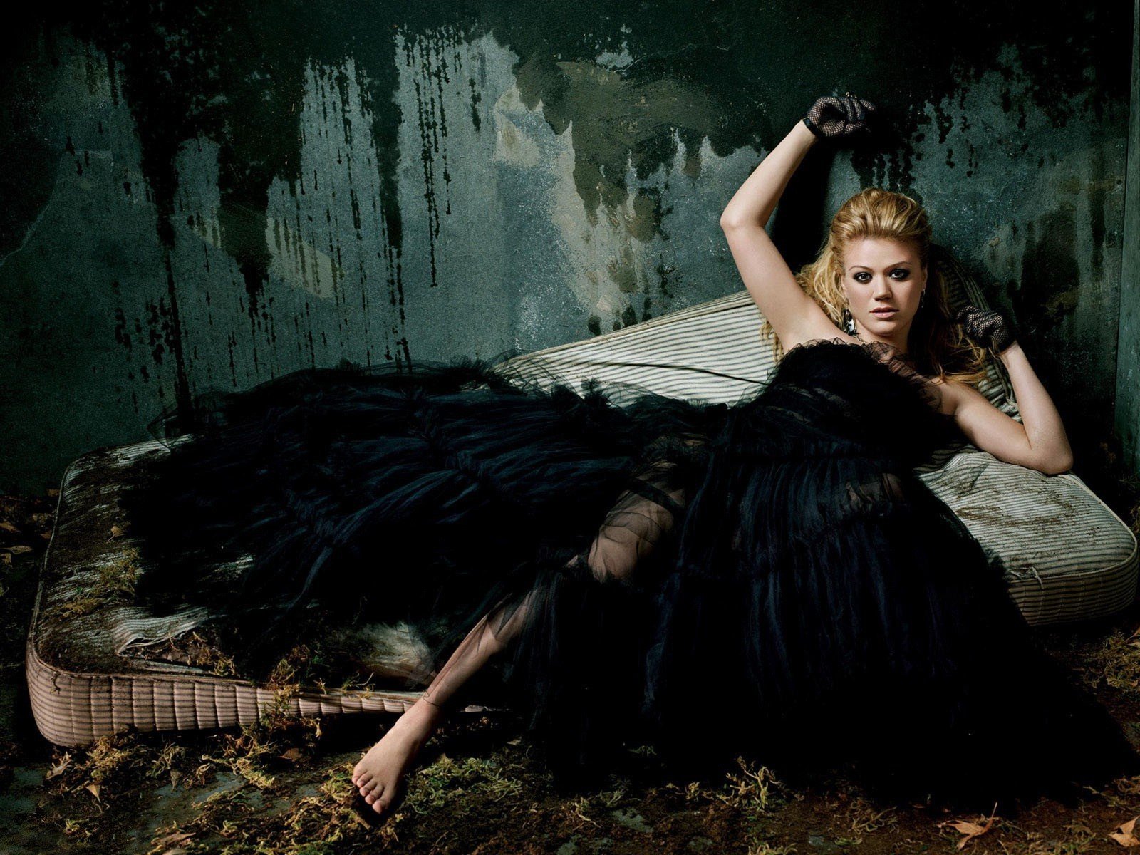 Ein Mädchen im schwarzen Kleid liegt auf einer nackten Matratze - wallpaper für das Telefon