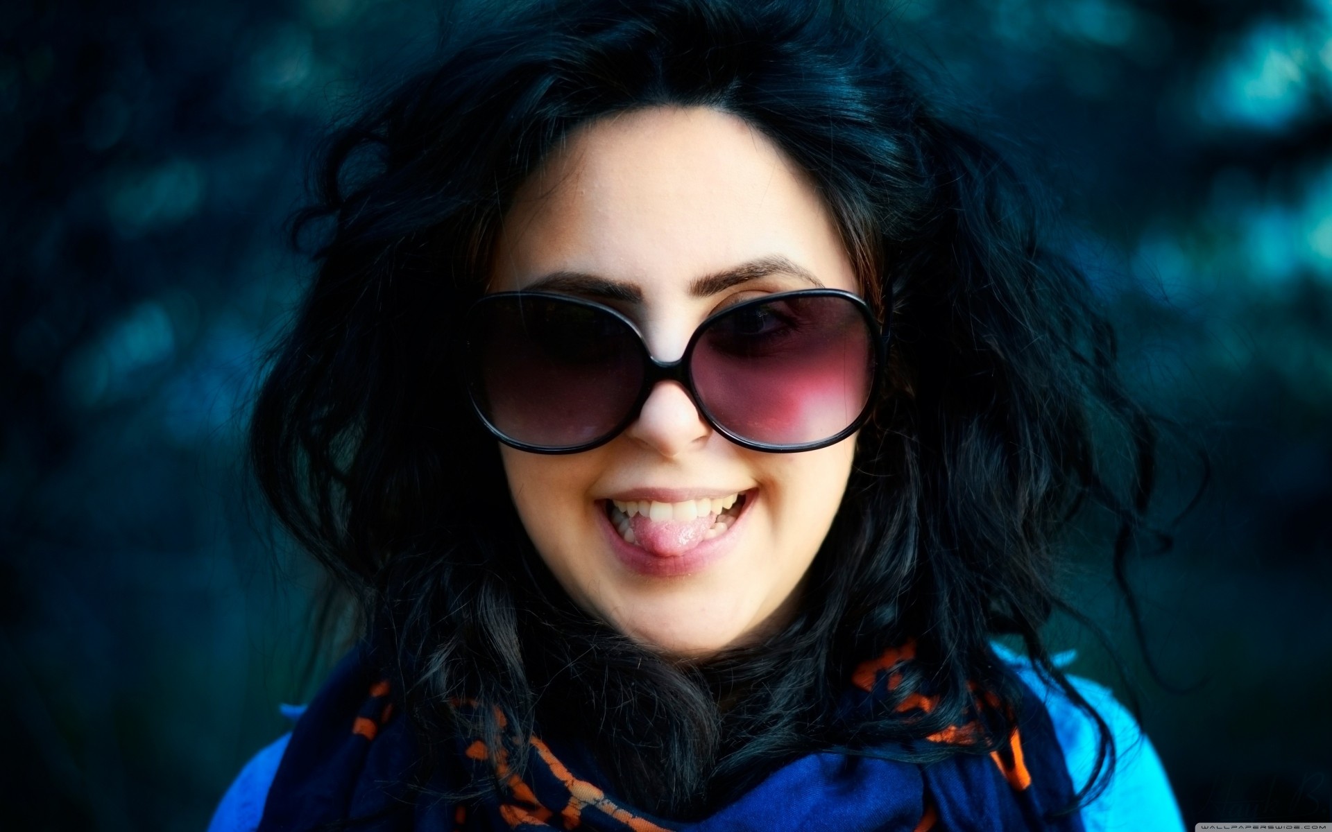 Schönes Mädchen mit Sonnenbrille - wallpaper für das Telefon