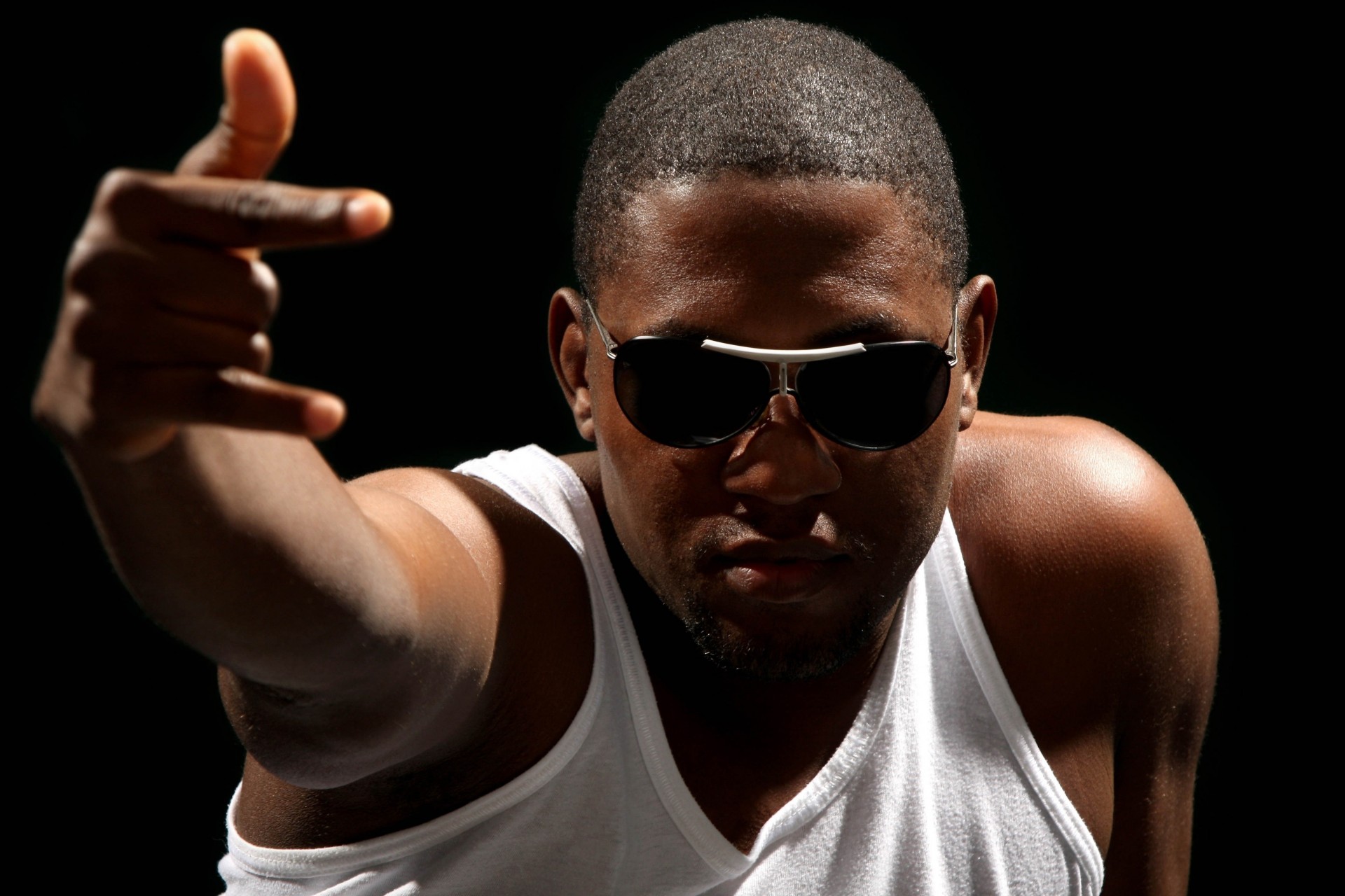 Kennungen:finger, hand, schwarzer hintergrund, sonnenbrille, männchen