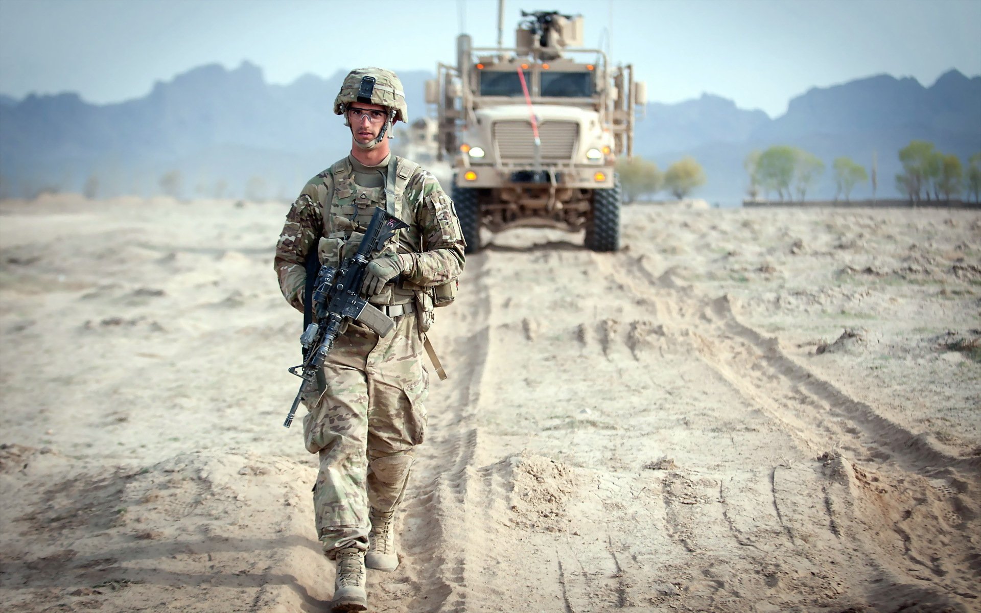 Spezialausrüstung, die von Soldaten im Sand verwendet wird - wallpaper für das Telefon
