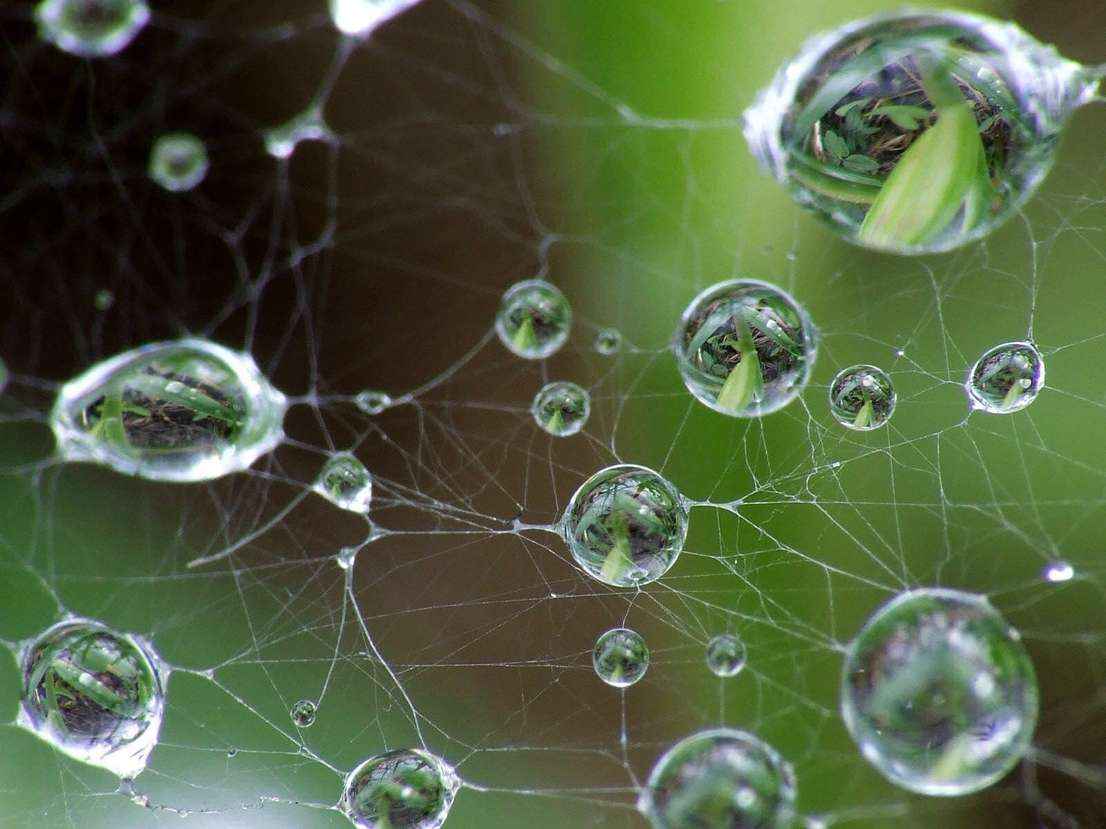 Sie legten Tau auf das Spinnennetz. Details in einem Tropfen spiegeln - desktop-Hintergrund