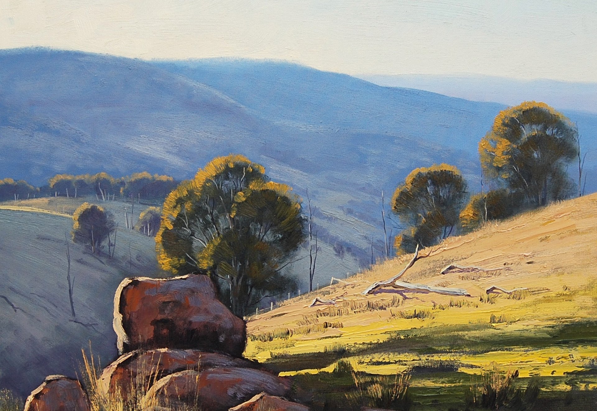 kunst artsaus natur hügel steine australien bäume zweige trocken