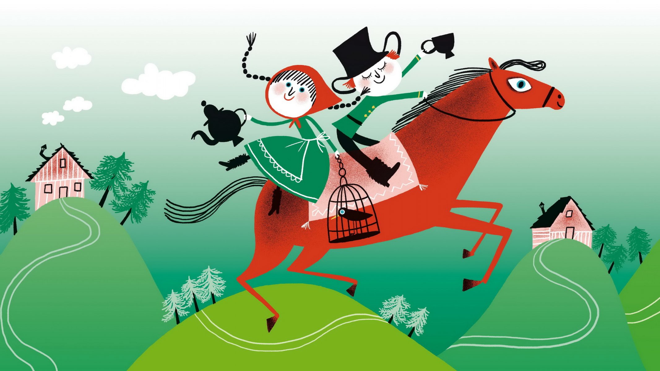 Ein Mädchen und ein Junge reiten auf einem Pferd - desktop-Hintergrund