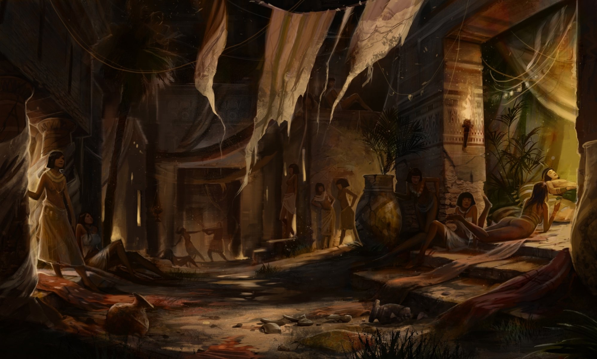 Ein Zimmer im alten Ägypten mit urlaubenden Mädchen - desktop-Hintergrund