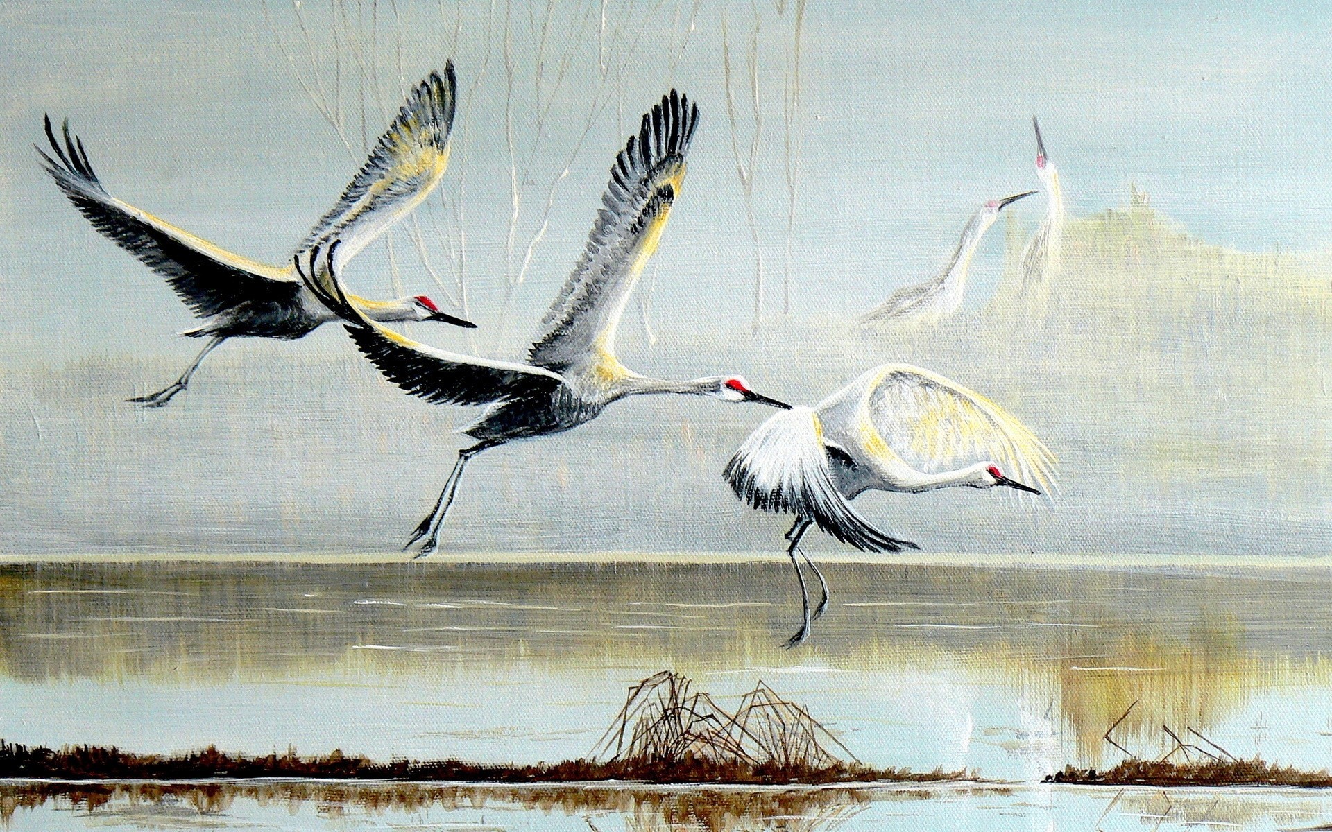 malerei störche vögel
