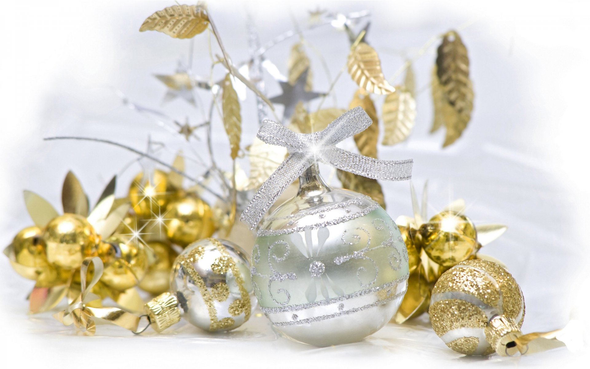 Silberner Weihnachtskugel mit Schleife auf goldenem Schmuckhintergrund - wallpaper für das Telefon