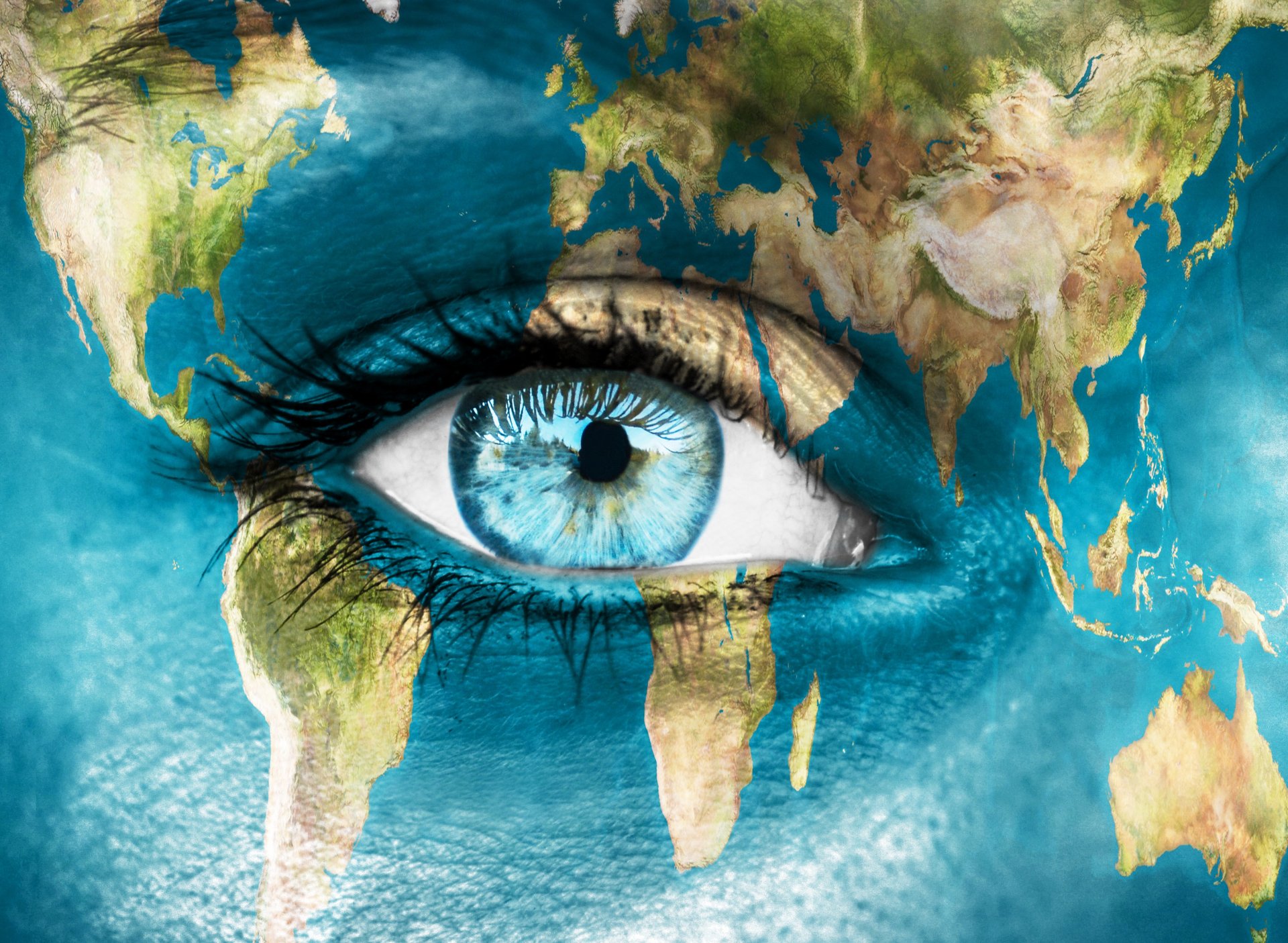 Nahaufnahme des auges mit make-up im körperkunststilNahaufnahme des Auges mit Make-up im Körperkunststil