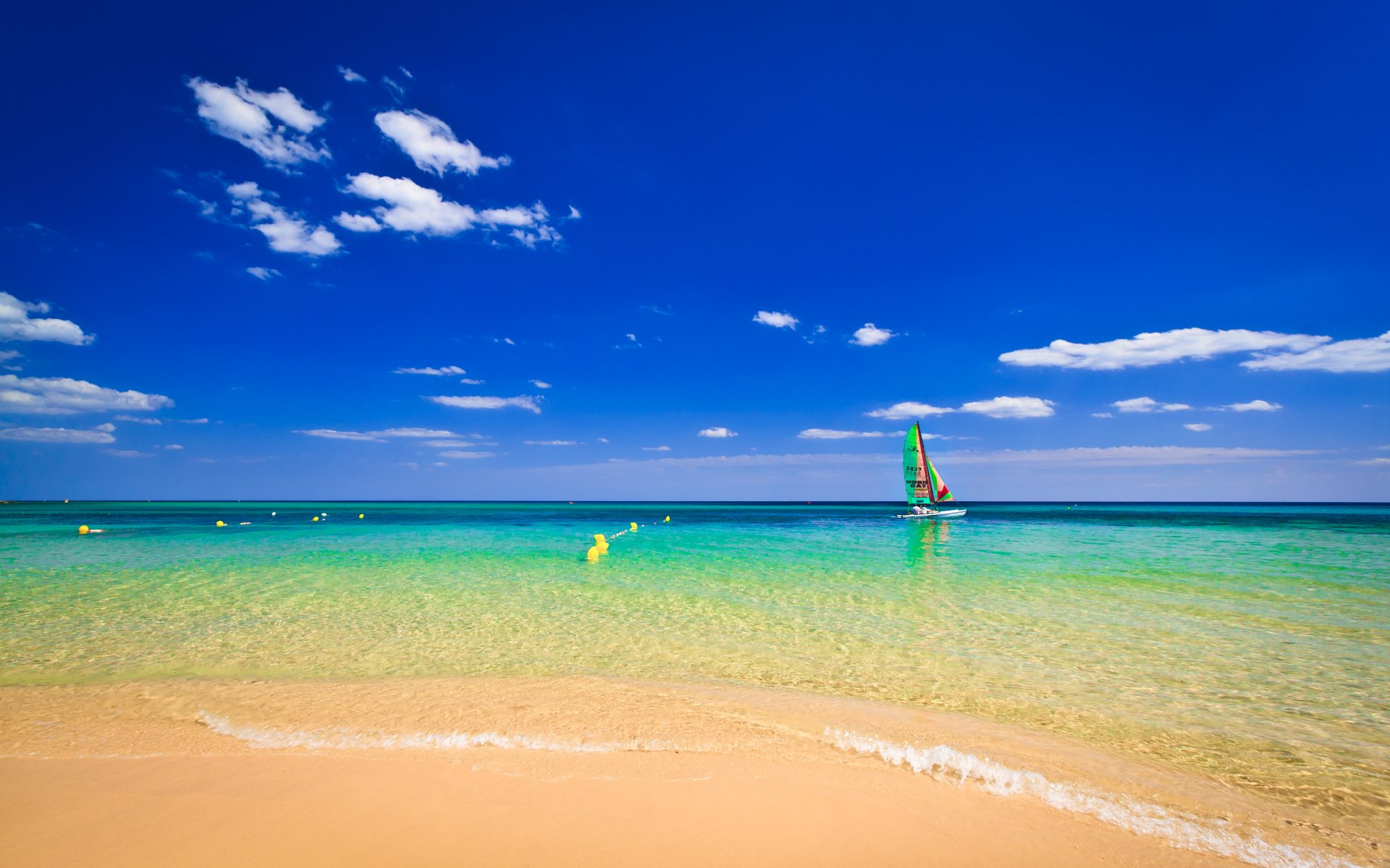 Bunte regenschirme am strand vor dem hintergrund des blauen meeresBunte Regenschirme am Strand vor dem Hintergrund des blauen Meeres