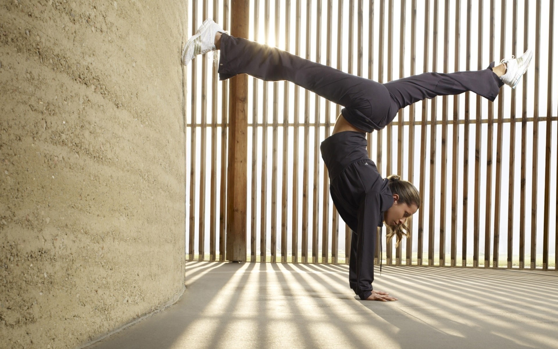 Das Mädchen steht in Bindfäden auf ihren Händen - wallpaper für das Telefon