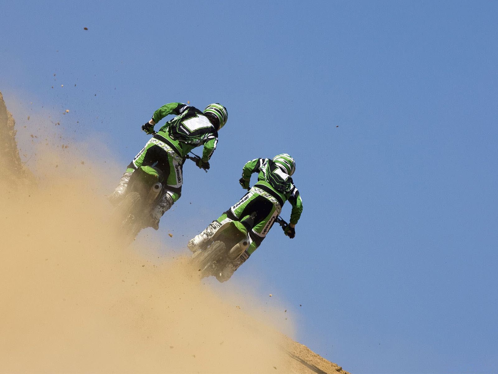 Zwei rivalisierende Motorradfahrer beim Rennen - wallpaper für das Telefon