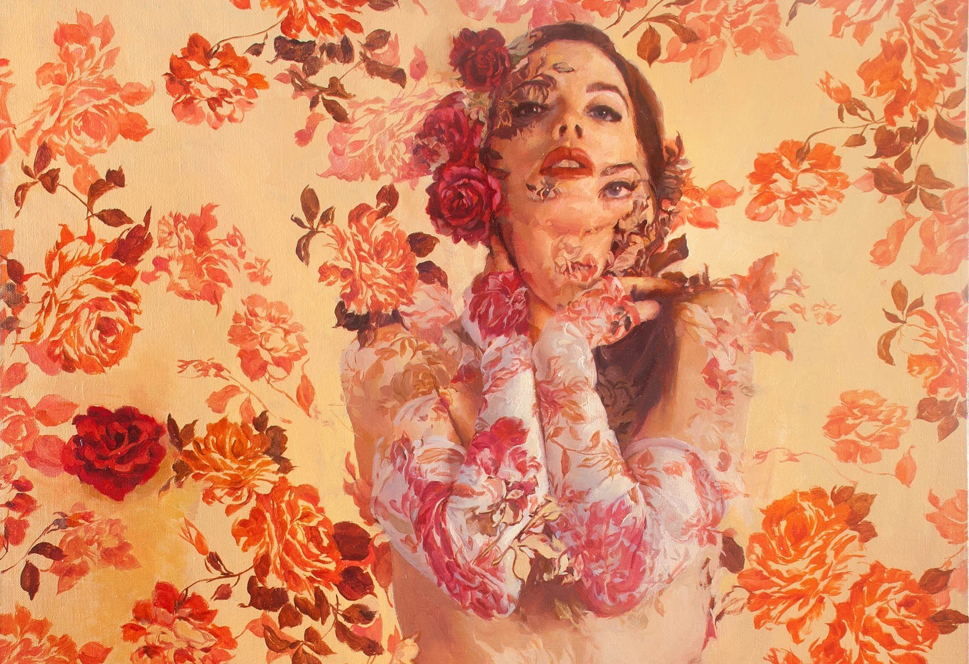 Abstrakte Kunst Mädchen mit Blumen - desktop-Hintergrund