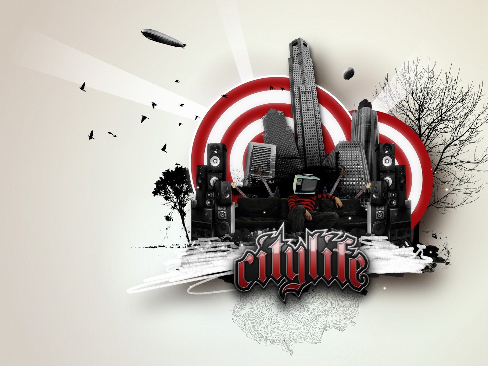 Erhabene Stadt auf einem Musterhintergrund - desktop-Hintergrund
