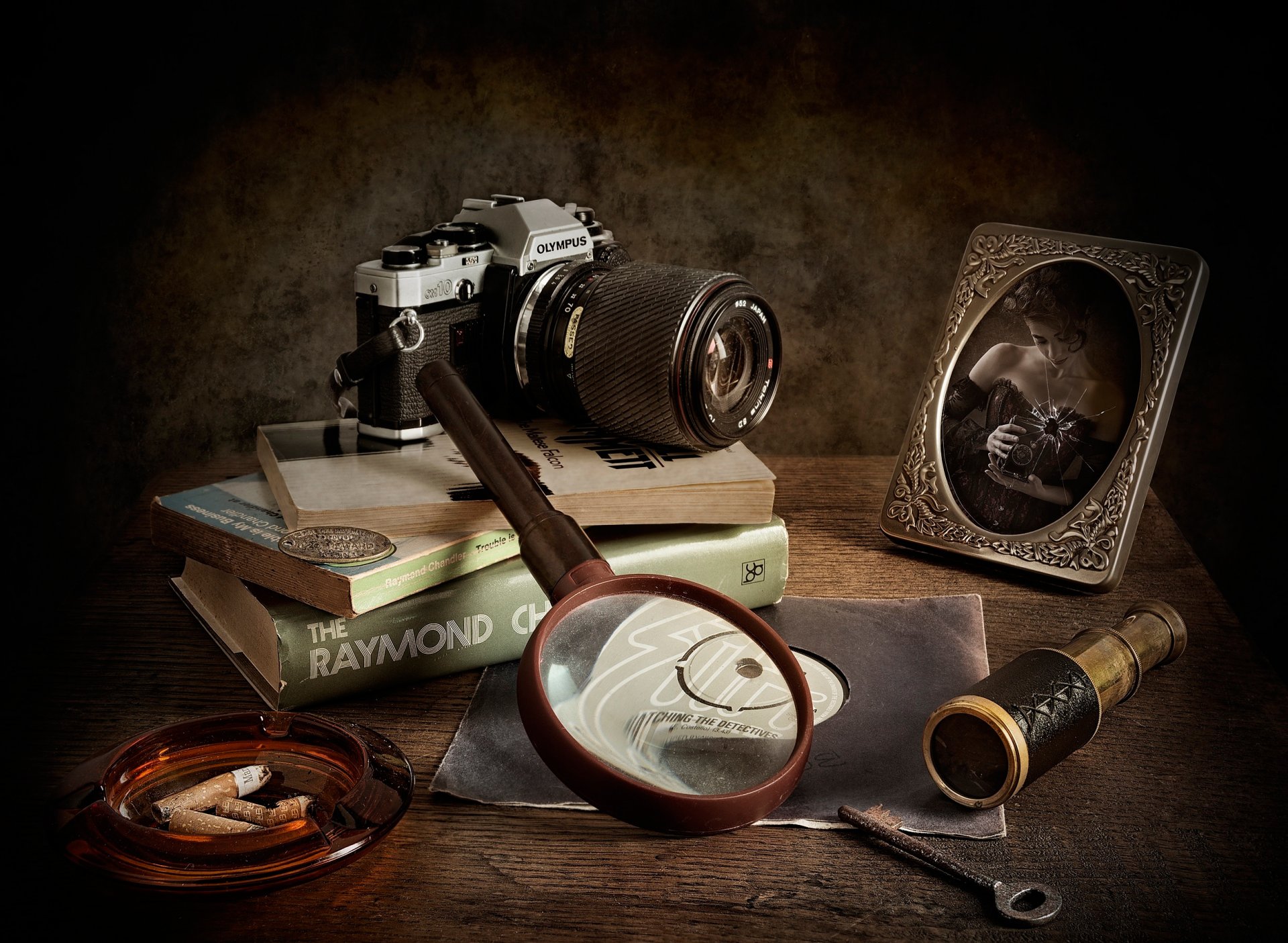 Kennungen:beobachtete detektive, kamera, lupe, bücher, detektive, porträt