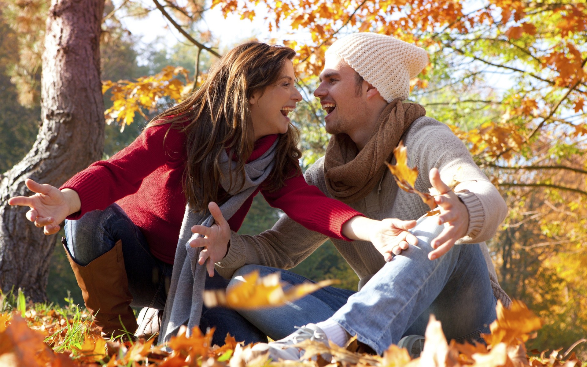 Glückliches Paar lsenyu im Laub - wallpaper für das Telefon
