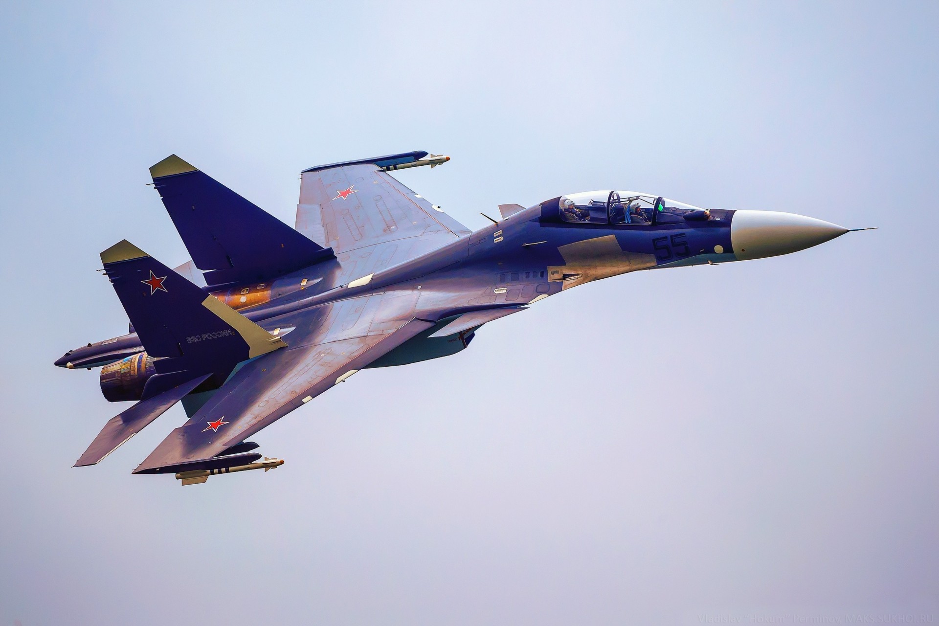 Ein blaues flugzeug mit roten sternen fliegt in den himmelEin blaues Flugzeug mit roten Sternen fliegt in den Himmel