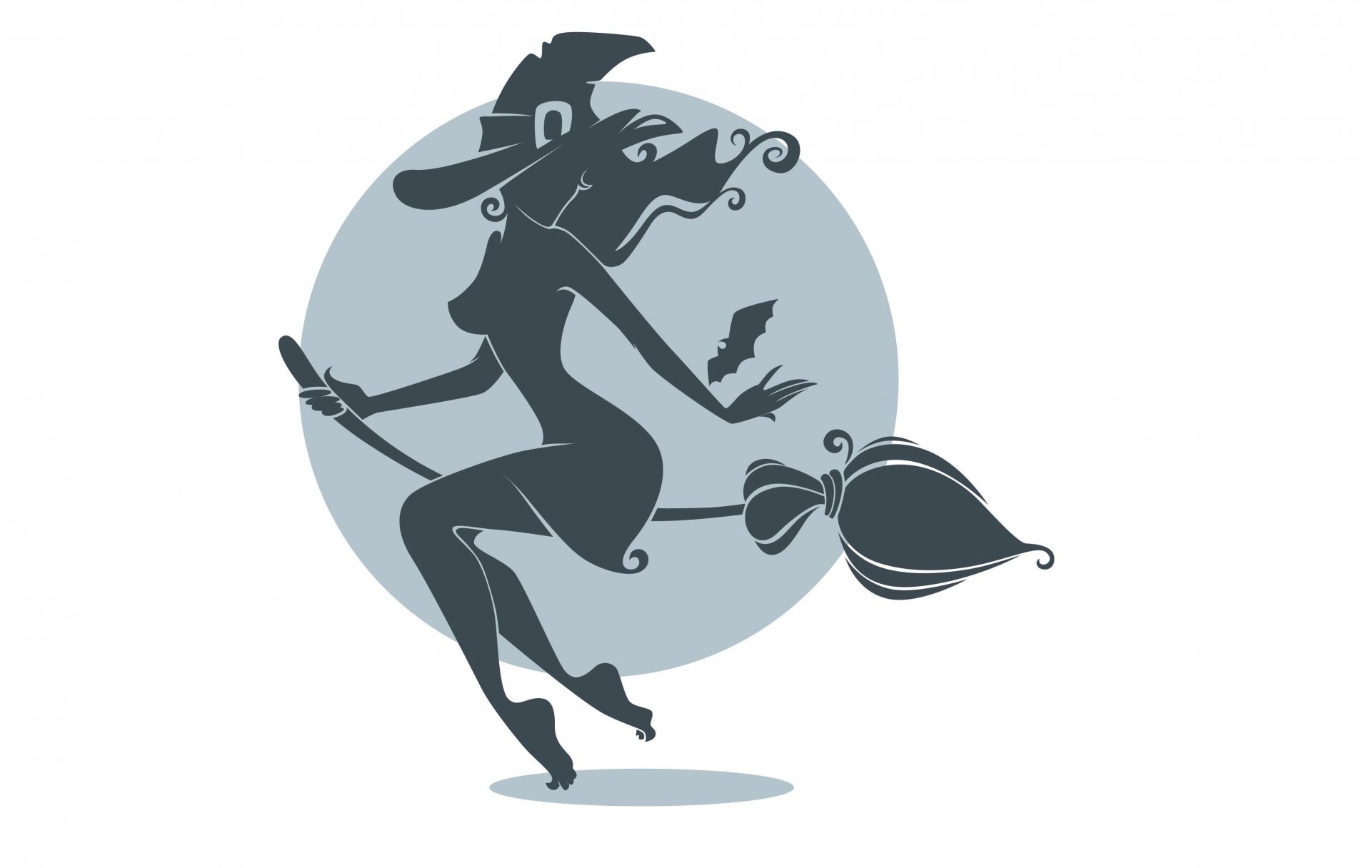 Silhouette einer Hexe mit einem Hut auf einem Besen