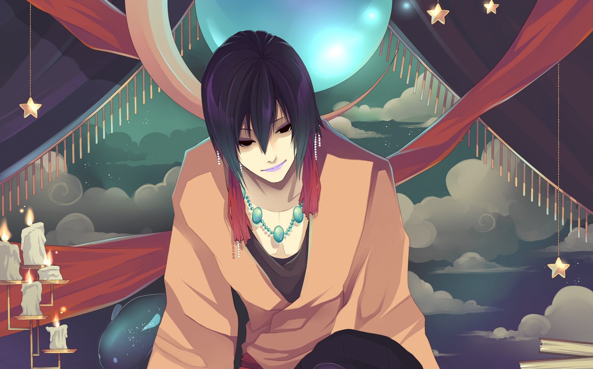 Mädchen mit kerzen auf dem hintergrund von wolken und sternenMädchen mit Kerzen auf dem Hintergrund von Wolken und Sternen
