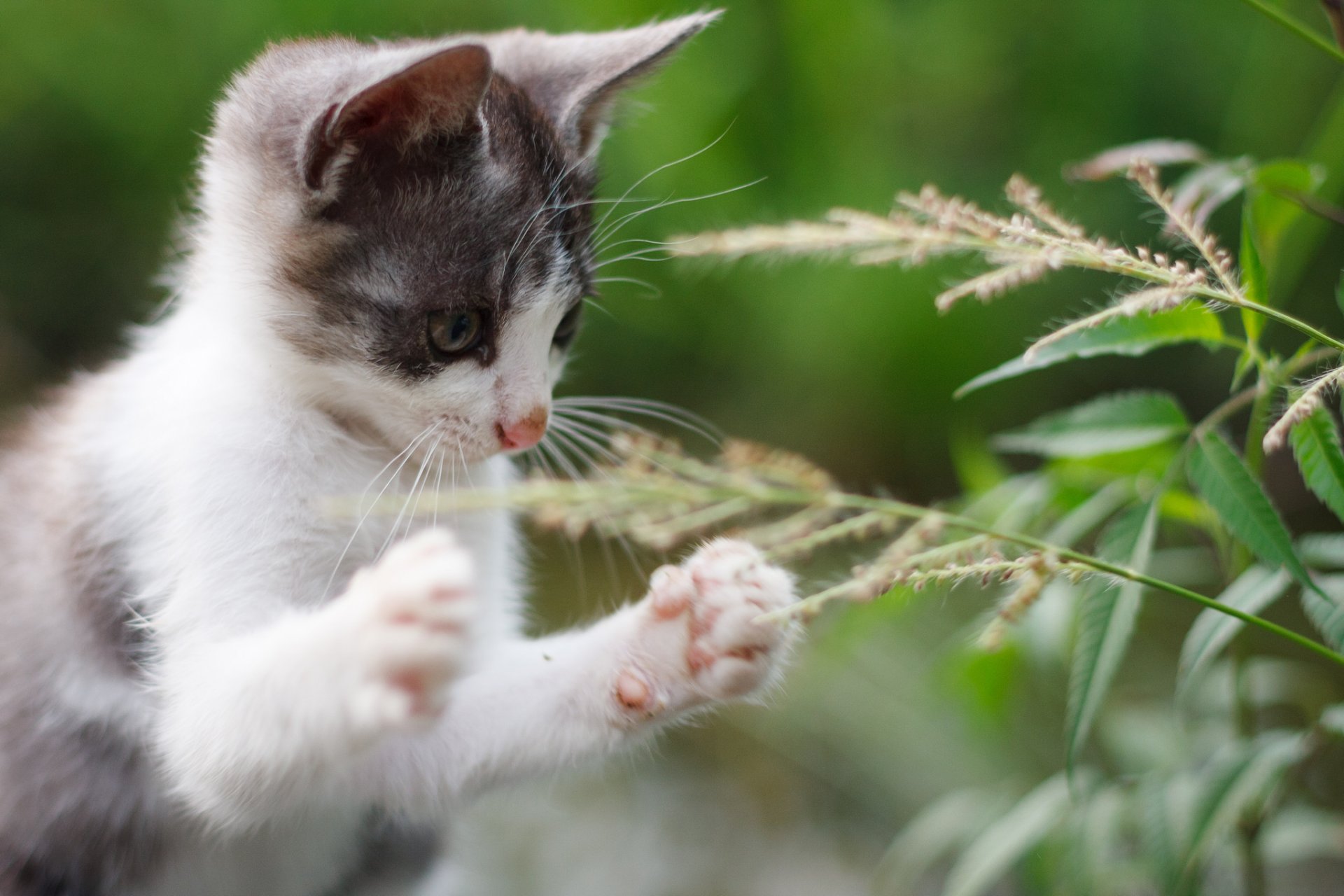 Die Schnauze eines Kätzchens im Sommer in der Natur