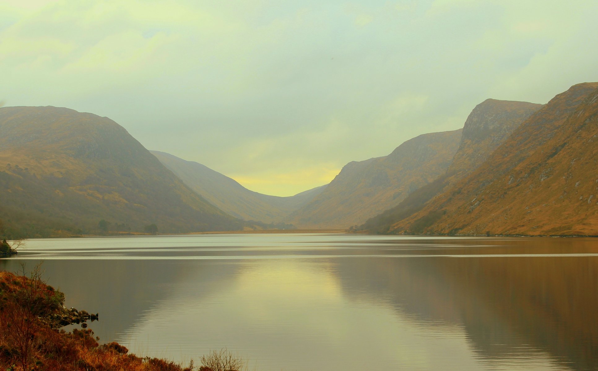 Morgenlandschaft mit See und Bergen