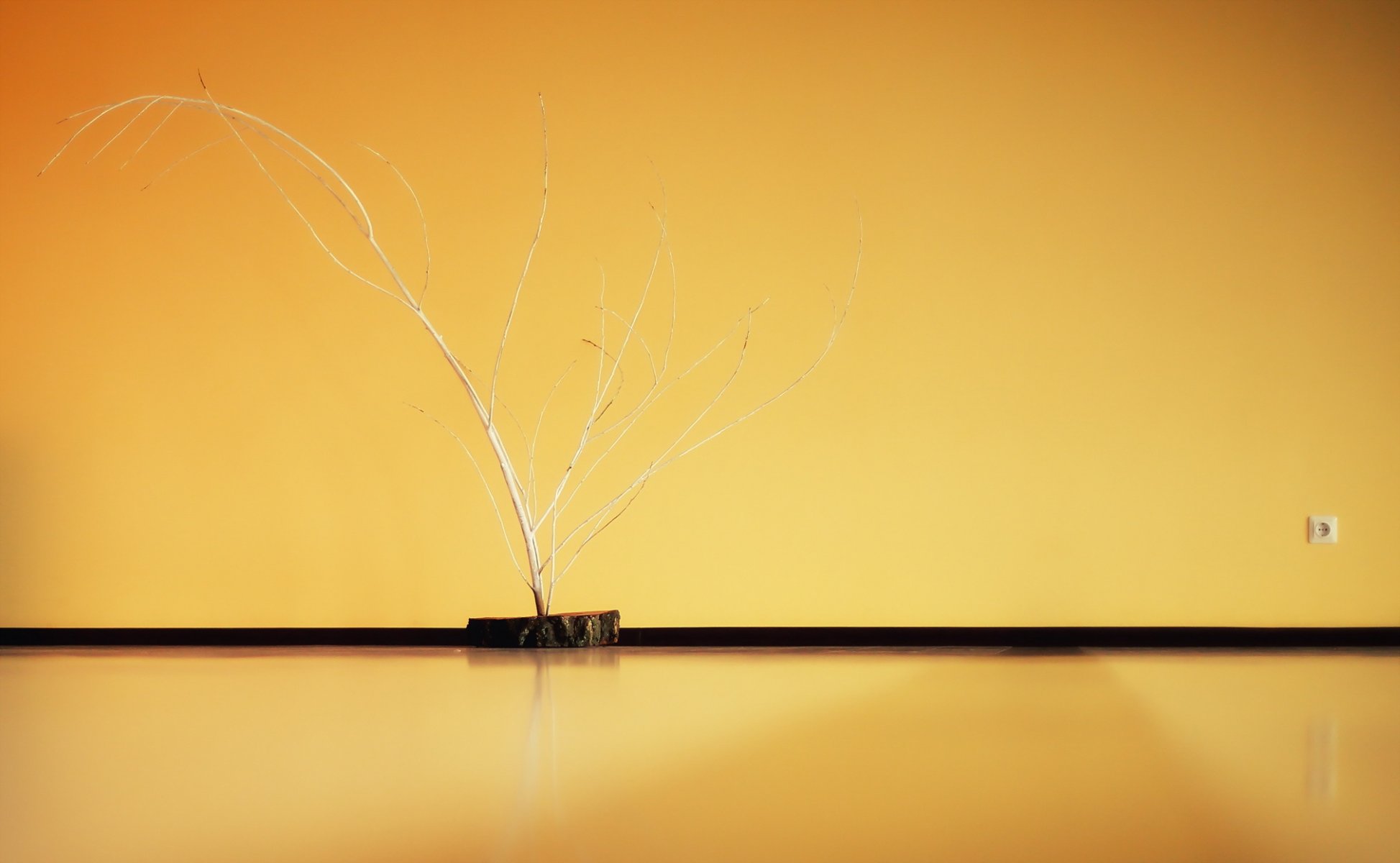 Baum ohne blätter, auf dem hintergrund der wand in einem käfigBaum ohne Blätter, auf dem Hintergrund der Wand in einem Käfig