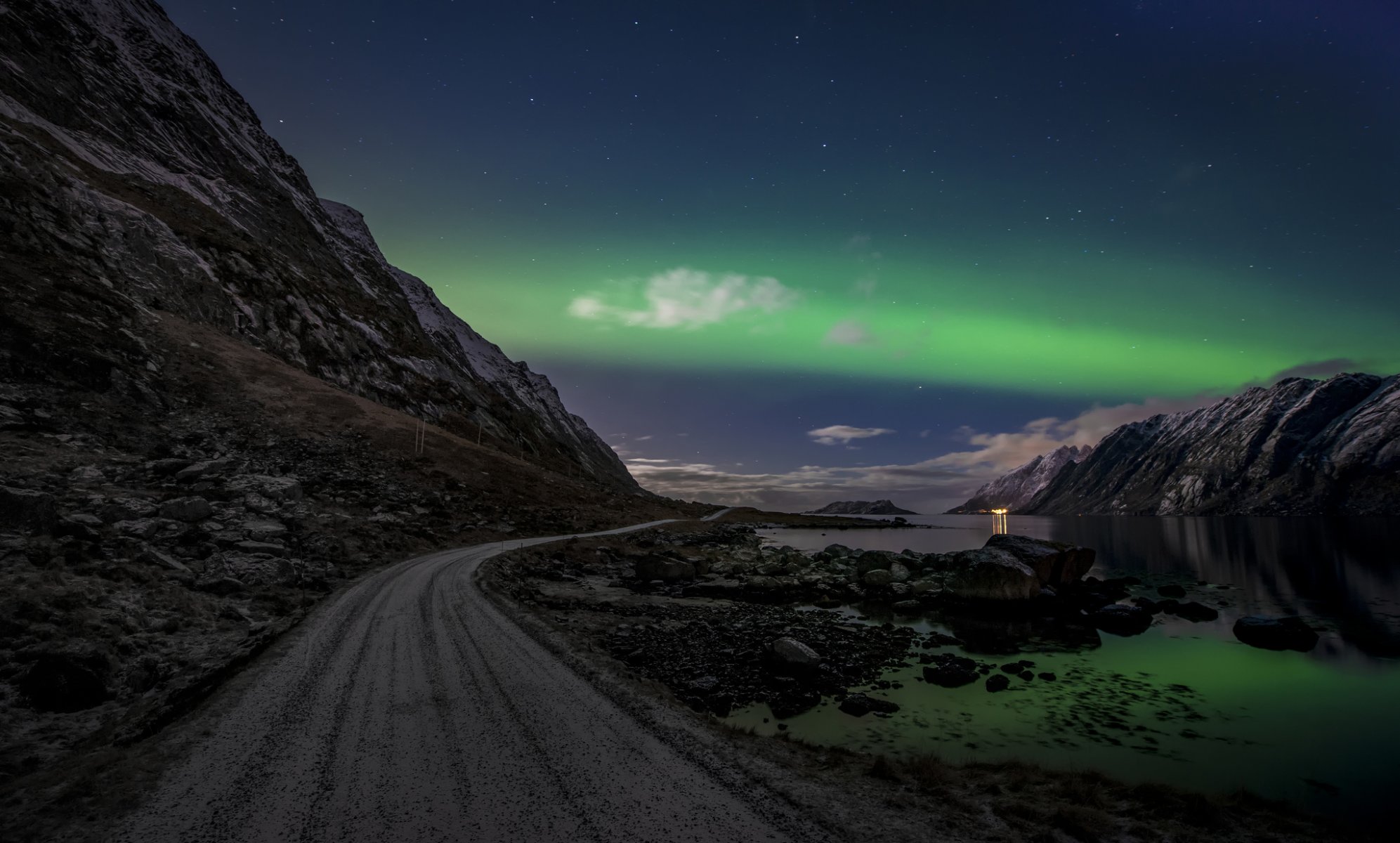 Auf der Straße in den Bergen sieht man eine wunderschöne Landschaft