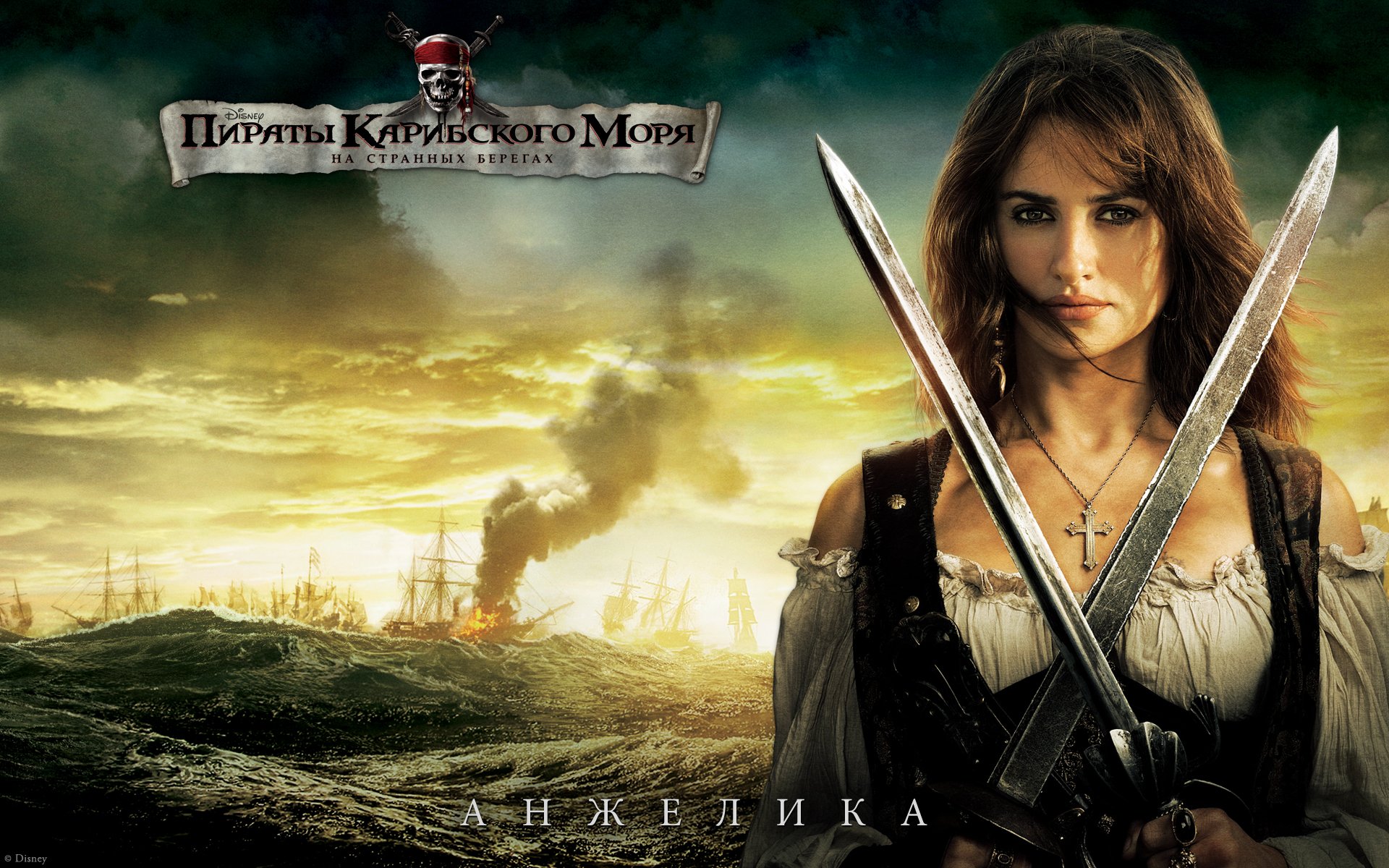 Fluch der karibik, im vordergrund steht angelica, die zwei schwerter hältFluch der Karibik, im Vordergrund steht Angelica, die zwei Schwerter hält