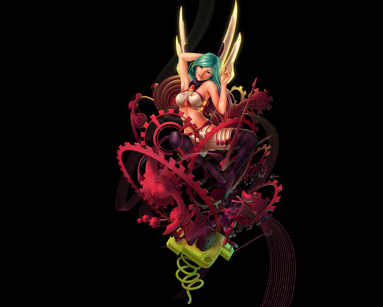 Ein Feenmädchen in einem Mechanismus, der wie ein Herz aussieht