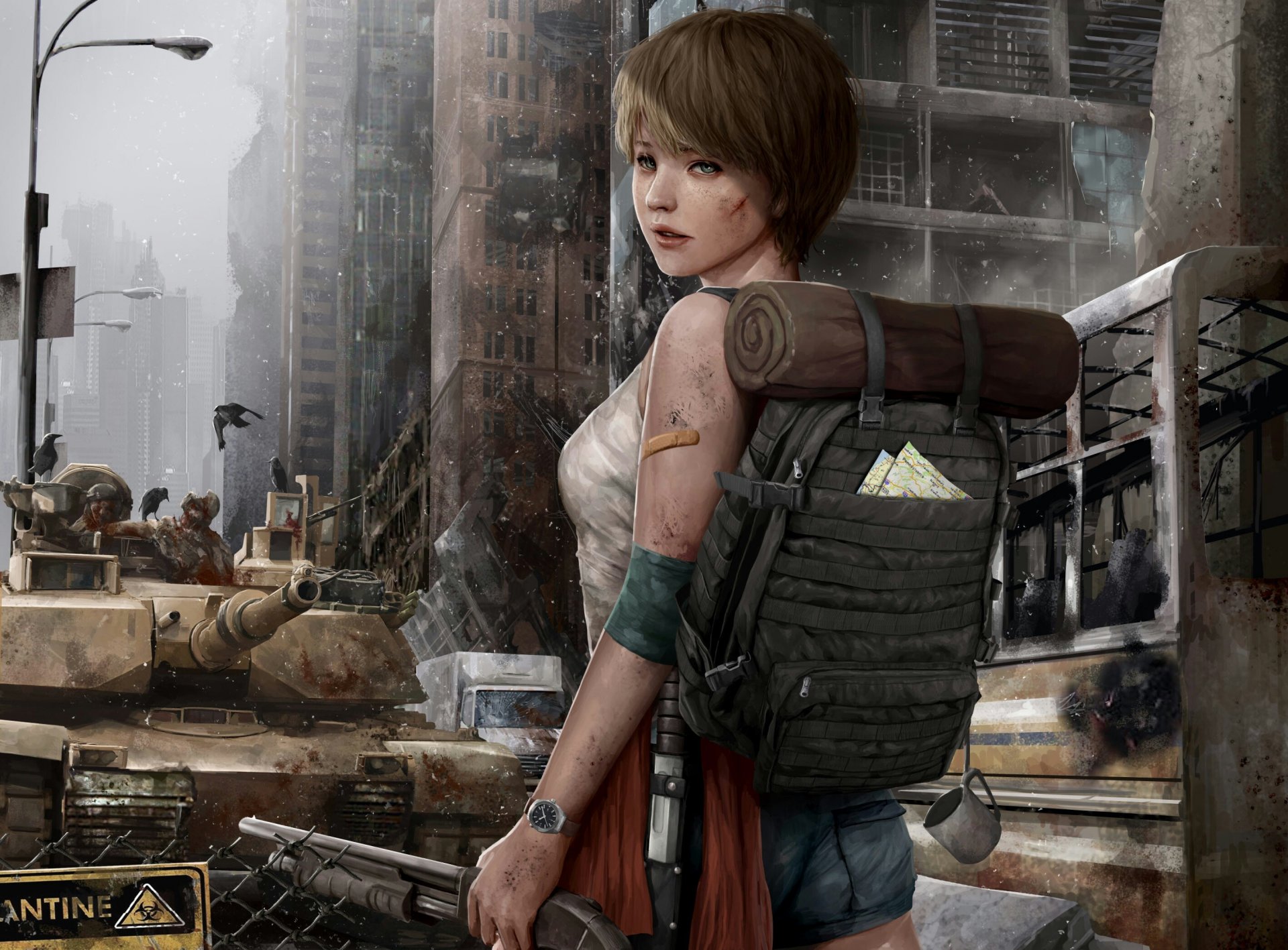 Ein wandermädchen in einer postapokalyptischen weltEin Wandermädchen in einer postapokalyptischen Welt