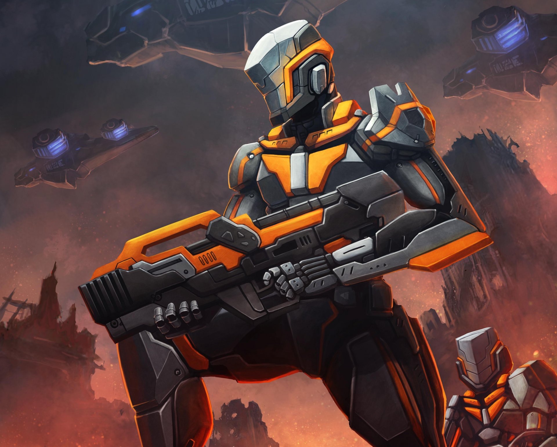 Armee von Robotersoldaten auf einem fernen Planeten
