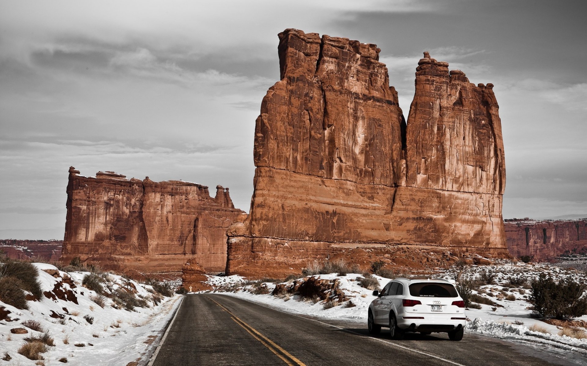Der Audi ist auf Geschwindigkeit. Durch das tobende Meer