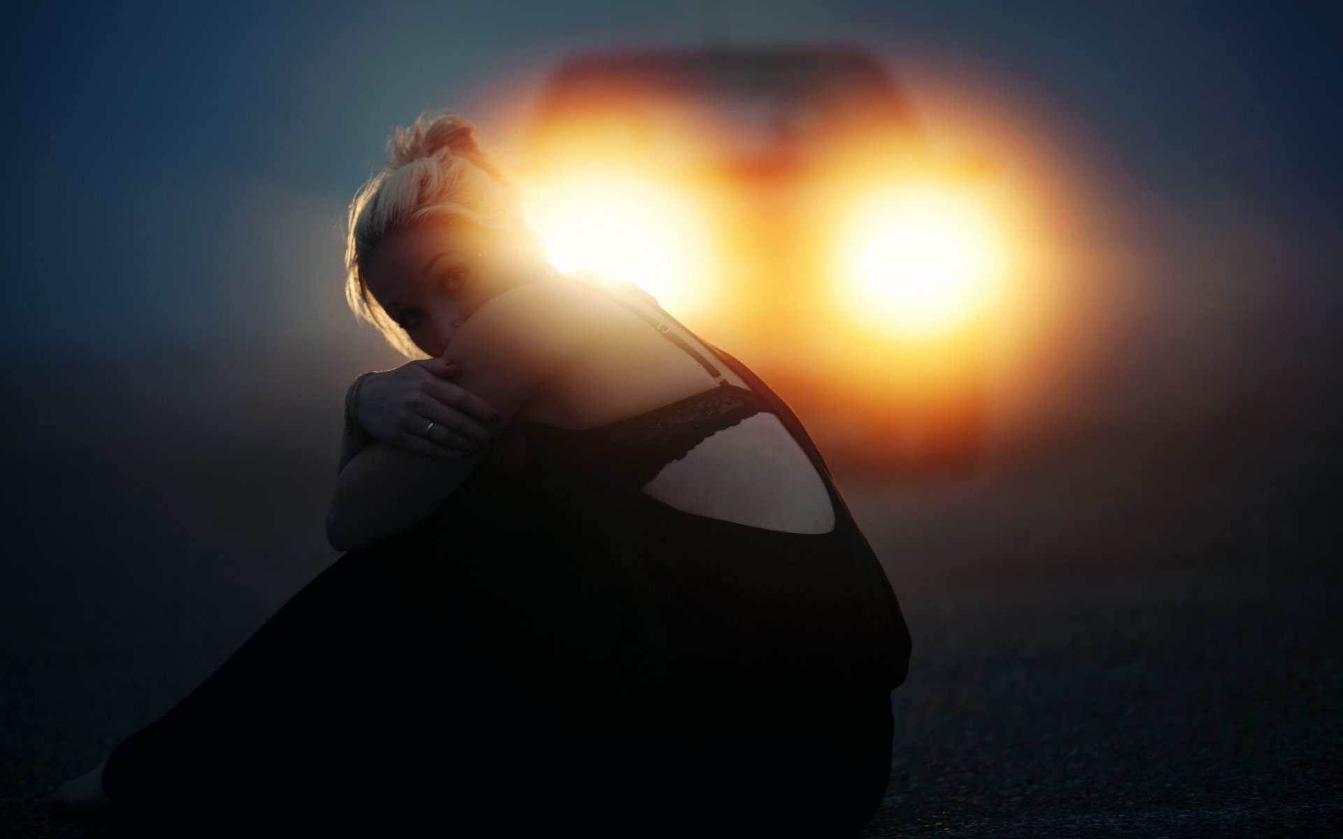 Das Mädchen ging auf der Straße und fing das Auto bereits auf der Straße, setzte sich auf die Straße, aber das Glück des Autos blieb stehen