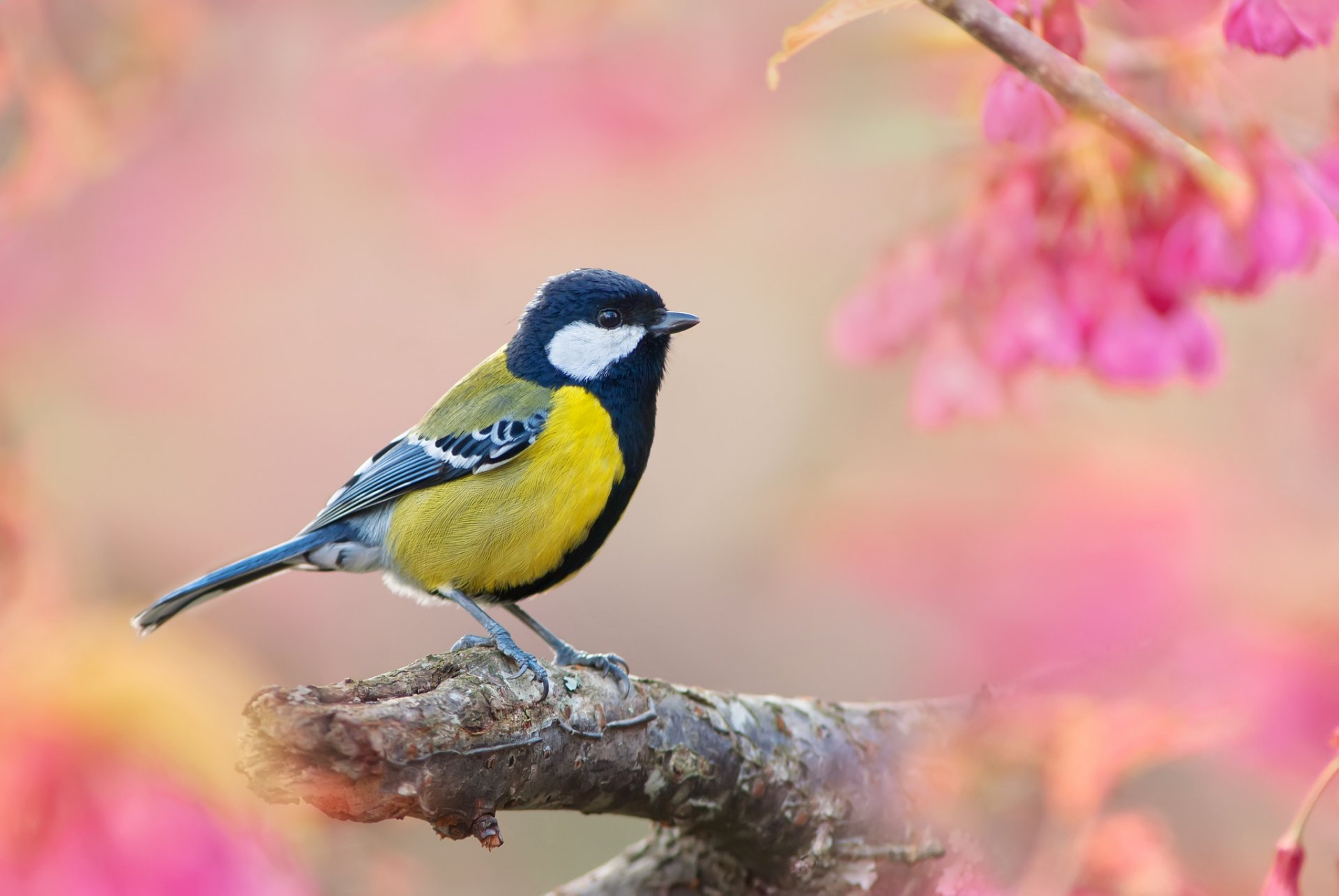Blühende Bäume auf einem Berg und Wolken Hintergrund